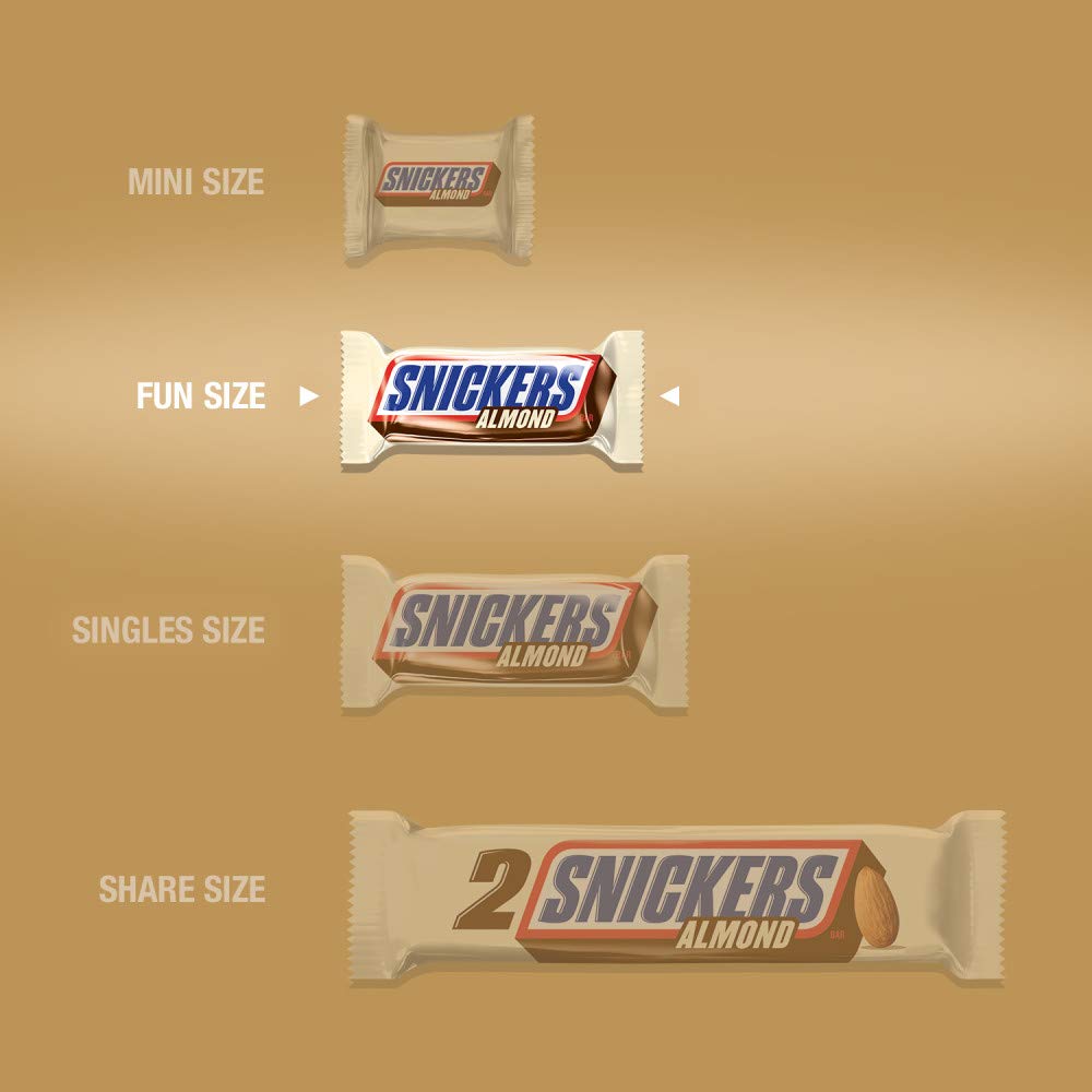 Product Descriptionsnickers Almond Fun Size Chocolate Bars Feature A Satisfying Combination Of Almonds, Creamy Caramel And Nougat Covered In Real Milk Chocolate. Made With The Same Great Taste Of Snickers Original, Snickers Almond Chocolate Bars Are A Delicious Spin On Your Favorite Candy Bar. Share Them With Friends, Family, Coworkers Or Party Guests. And Don'T Forget To Fill Your Candy Dish With These Delicious Chocolate Treats.Manufacturer Contact Informationhackettstown, Nj 07840-1503 Usa