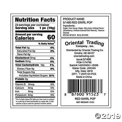 Red Swirl Pops. Each 2'' Cherry-Flavored Pop Is On A 4 1/2'' Plastic Stick. Individually Wrapped. (2 Dz./Unit) Fat-Free. Each Listing Is For 24 Cherry-Flavored Pops Even Though Image Might Show Less.
