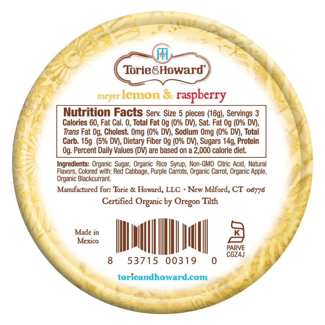- Q: What flavors are available in Torie and Howard Organic Hard Candy? A: This particular variant features the delicious flavors of lemon and raspberry, providing a refreshing and fruity taste experience. Torie and Howard offers a variety of other flavors as well, so you can explore different taste options.