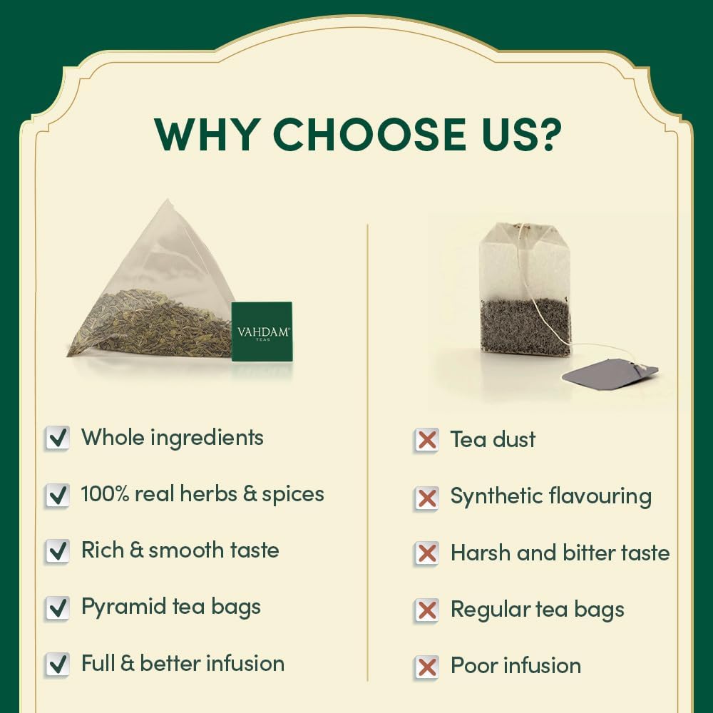 Q: How should I prepare the VAHDAM chai tea bags for the best flavor?A: To prepare the VAHDAM chai tea bags, use one tea bag per 200 ml of water heated to 100° C. Steep for 3 to 5 minutes to achieve the best flavor profile.