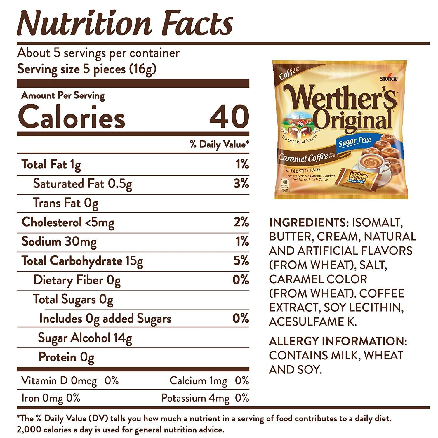 - Q: How many candies are included in the 2.75 oz pack? A: The 2.75 oz pack of Werther's Original Sugar Free Caramel Coffee Hard Candies contains three individual packs, making it perfect for sharing or enjoying on your own.