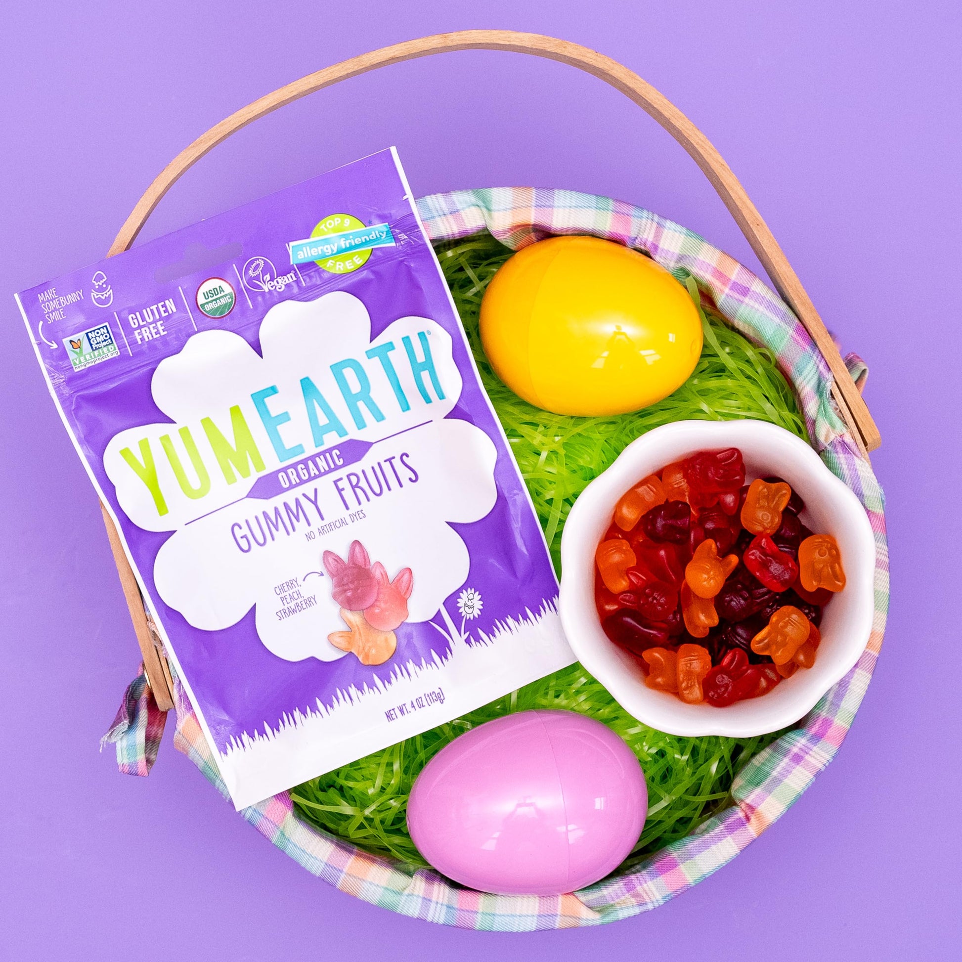 Q: What are the main ingredients in YumEarth Easter Candy Organic Gummy Fruits?A: YumEarth Easter Candy Organic Gummy Fruits are made with organic ingredients and are free from artificial flavors and dyes. They contain no high fructose corn syrup and are suitable for those with allergies as they exclude the top 9 allergens.