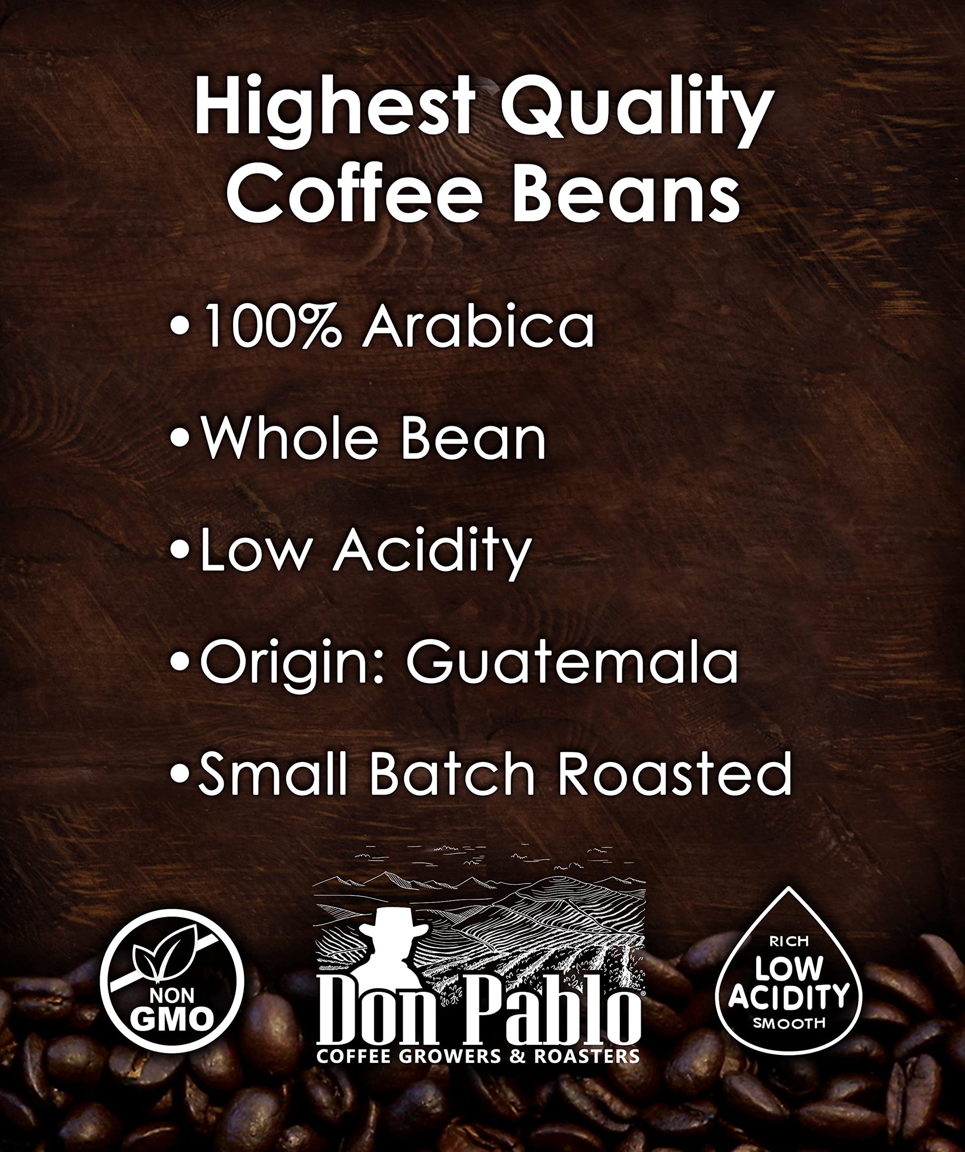 - Q: What makes Pablo's Pride Guatemala coffee unique? A: Pablo's Pride Guatemala coffee is unique due to its rich, chocolatey flavor profile combined with a smooth, velvety body and low acidity. The beans undergo a slight caramelization that adds a touch of roastiness while preserving their natural sweetness.