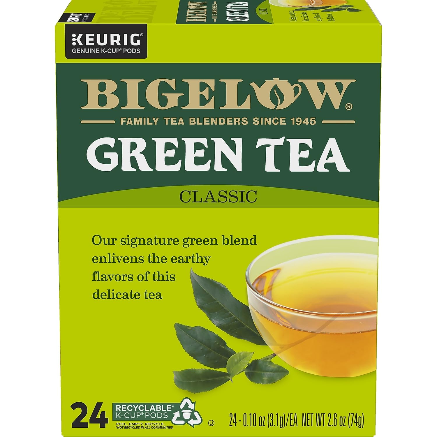 Q: What makes Bigelow Green Tea a good choice for tea lovers?A: Bigelow Green Tea is an excellent choice for tea lovers because it combines high-quality, all-natural ingredients with a smooth, delicate flavor. The convenience of single-serve K-Cup Pods also allows for quick and easy brewing, making it perfect for any time of day.