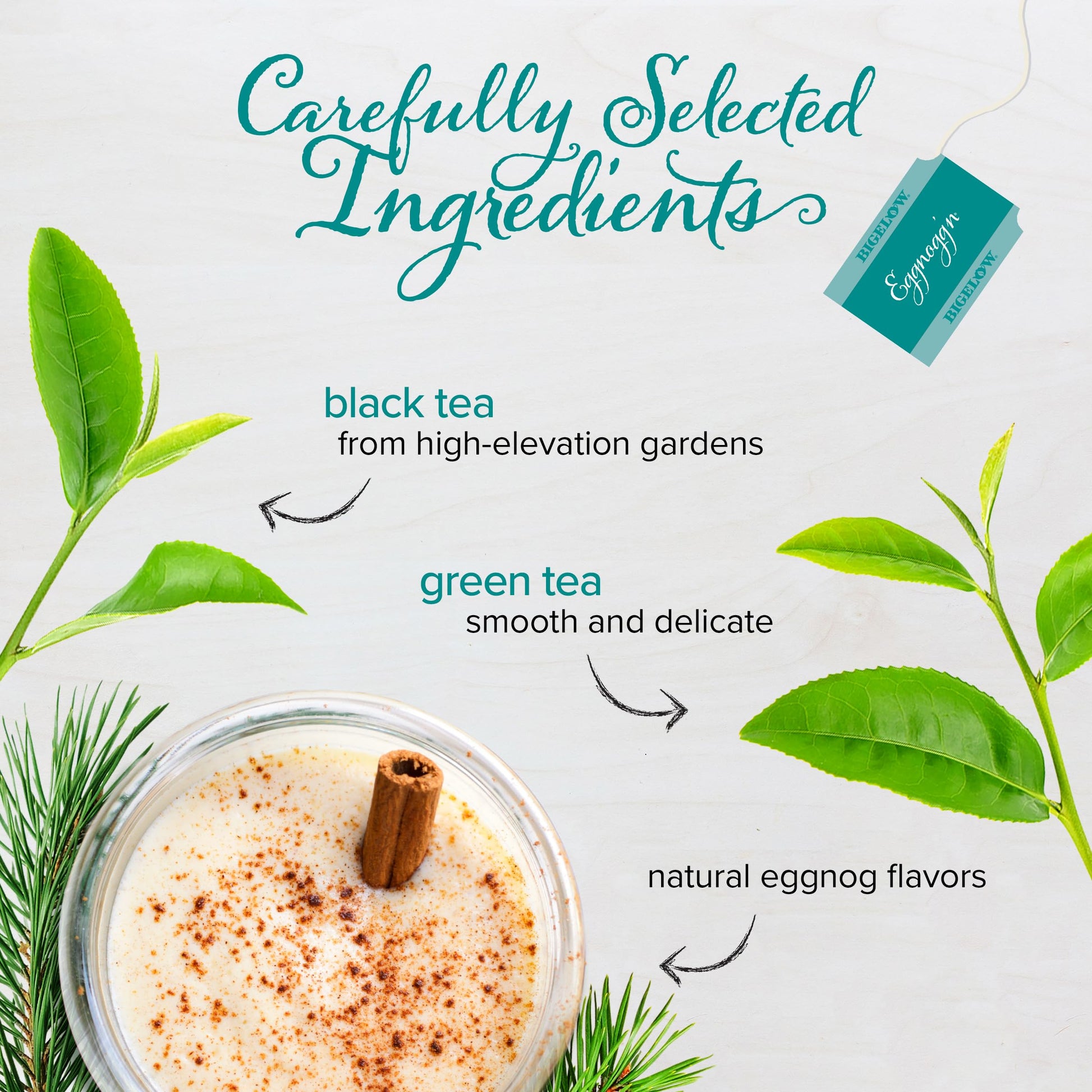 Q: What makes Bigelow Tea Eggnogg'n Black Tea a great holiday gift?A: Bigelow Tea Eggnogg'n Black Tea is crafted with a festive flavor and is individually wrapped for freshness, making it an ideal holiday gift for tea lovers looking to enjoy a cozy beverage during the cold winter months.