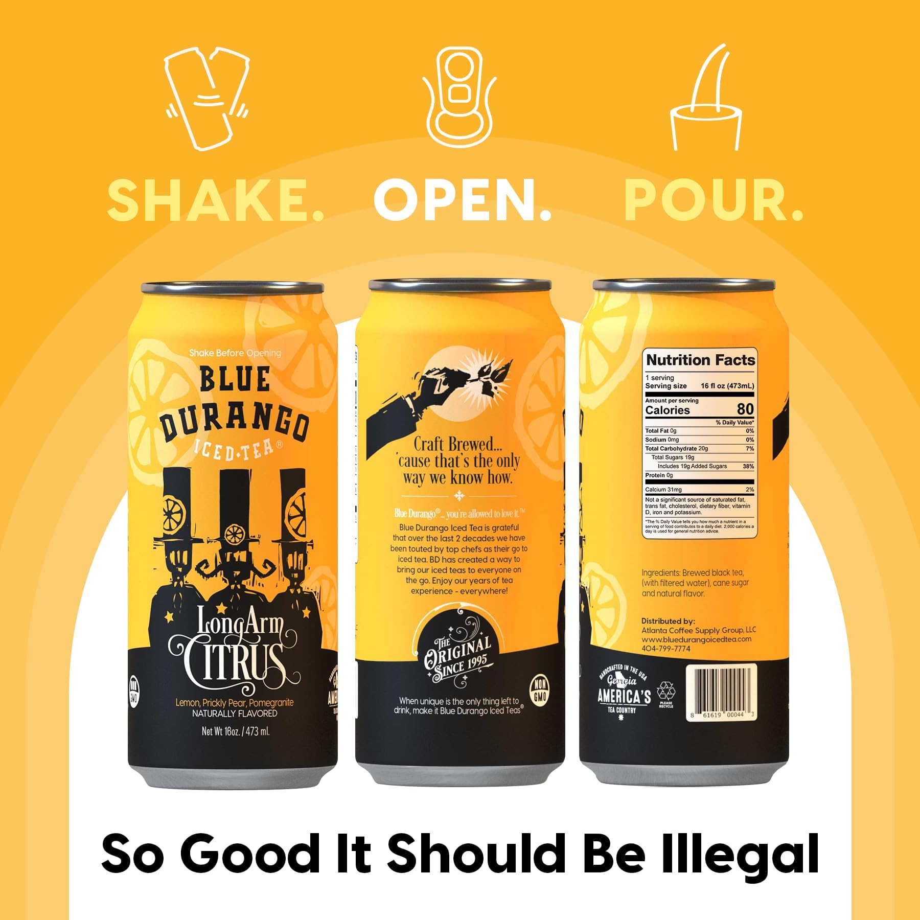 Our Take On The Ubiquitous Lemonade Iced Tea Mixture. We Have Created Long Arm Citrus In The Style Of Sangria So That The Drink Is Tea-Forward With The Essence Of Fruit Soaking In Our Unsweetened Iced Tea. We Use Lemon, Pomegranate, And The Sweetest Fruit Of All - The Prickly Pear. The Flavor Is Arresting.... Trust Us, You Won'T Regret It. We'Ve Always Believed In Celebrating The Simple Joys In Life. And For Over Two Decades, We'Ve Poured That Belief Into Blue Durango Iced Tea. It Started As A Favorite In Independent Restaurants And, Thanks To A Bunch Of Raving Fans (You Know Who You Are), It Became A Sensation. Enter Long Arm Citrus. Not Your Average Tea, But We'Ve Never Stood For The Ordinary. The Zest Of Lemon, The Combination Of Tart And Underlying Sweetness Of Pomegranate, And The Unique Melony Taste Of Prickly Pear, All Come Together In A Drink Thats Been Years In The Making. Our Journey Has Been Nothing Short Of Incredible-From Brewing For Top-Tier Restaurants To Getting Calls Praising Our Unique Flavor. And Now? Were Bringing This Magic Straight To You, Canned And Ready To Accompany Your Moments. Whether You'Re On The Move Or Just Kicking Back, Grab A Drink Rooted In Tradition With A Creative Twist. Enjoy The Genuine Taste Of Blue Durango Iced Tea, Crafted With Passion And History.