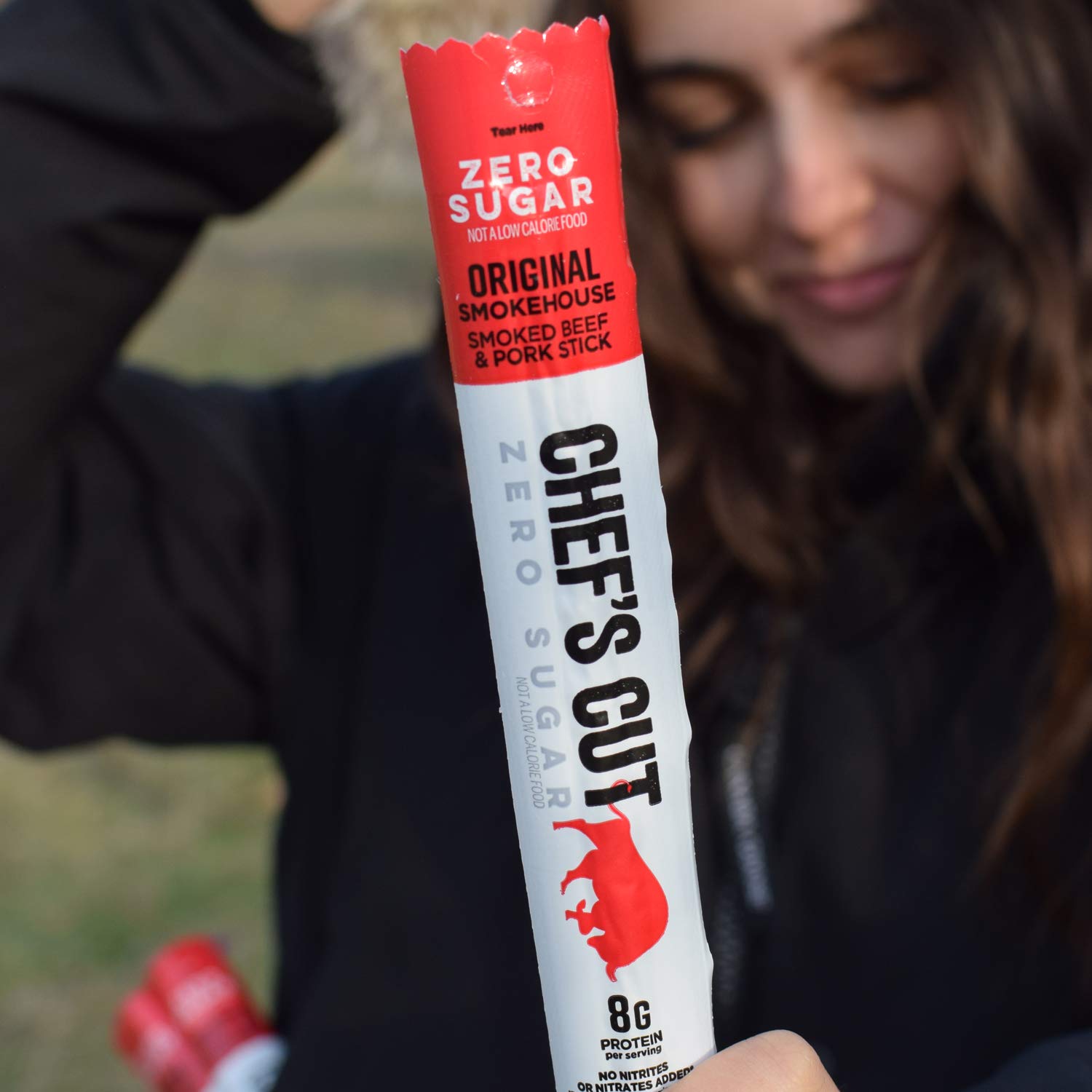 - Q: Do Chef’s Cut Real Snack Sticks contain any sugar? A: No, Chef’s Cut Real Snack Sticks are sugar-free, providing a healthy snacking option without added sugars.