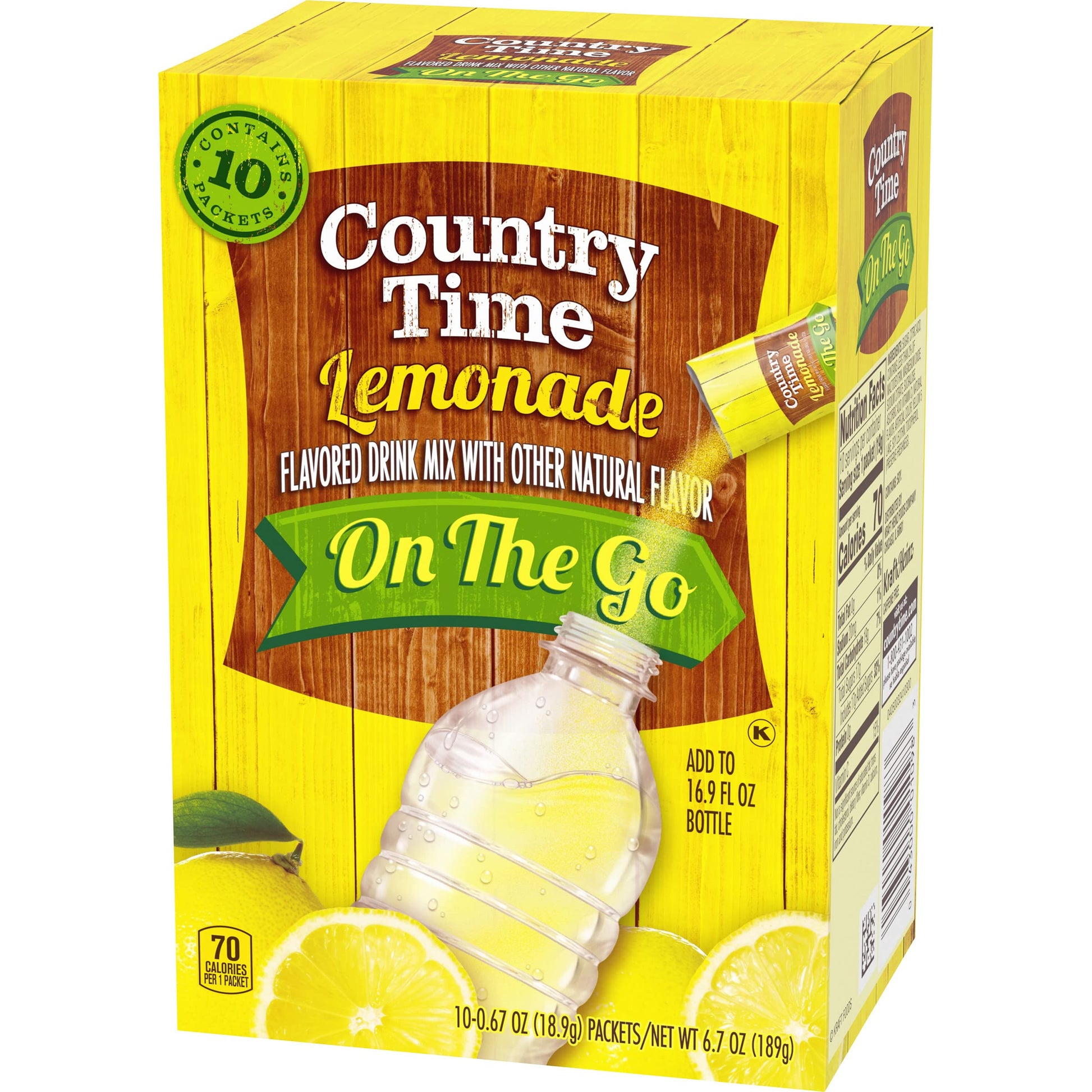 - Q: How do I prepare the Country Time Lemonade drink mix? A: To prepare the Country Time Lemonade drink mix, simply add one packet to a bottle or a tall glass of water. Stir or shake well to mix, and enjoy a refreshing beverage with a perfect balance of sweet and tart flavors.