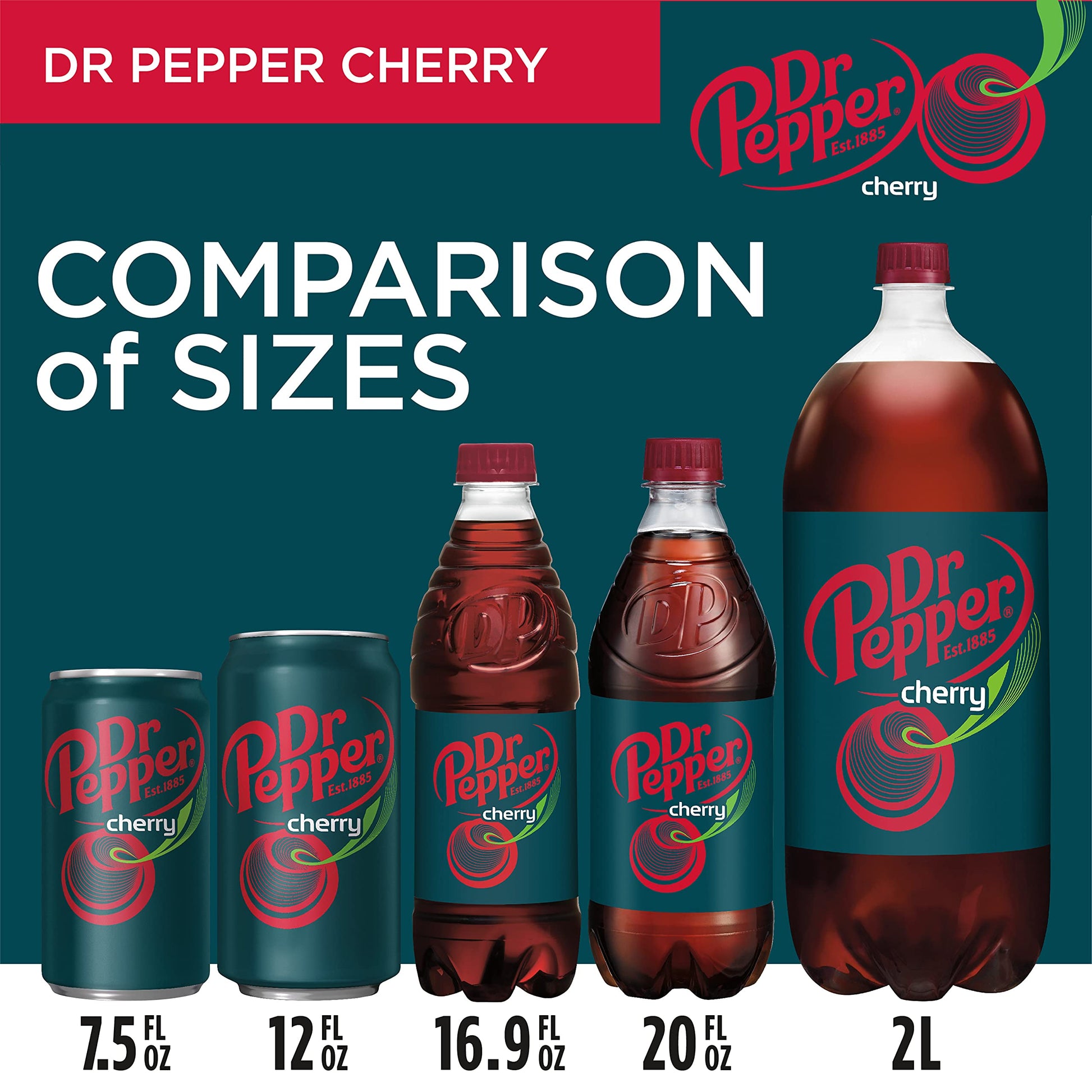 - Q: What is the size of each can in the Dr Pepper Cherry Soda pack? A: Each can in the Dr Pepper Cherry Soda pack contains 12 fluid ounces.