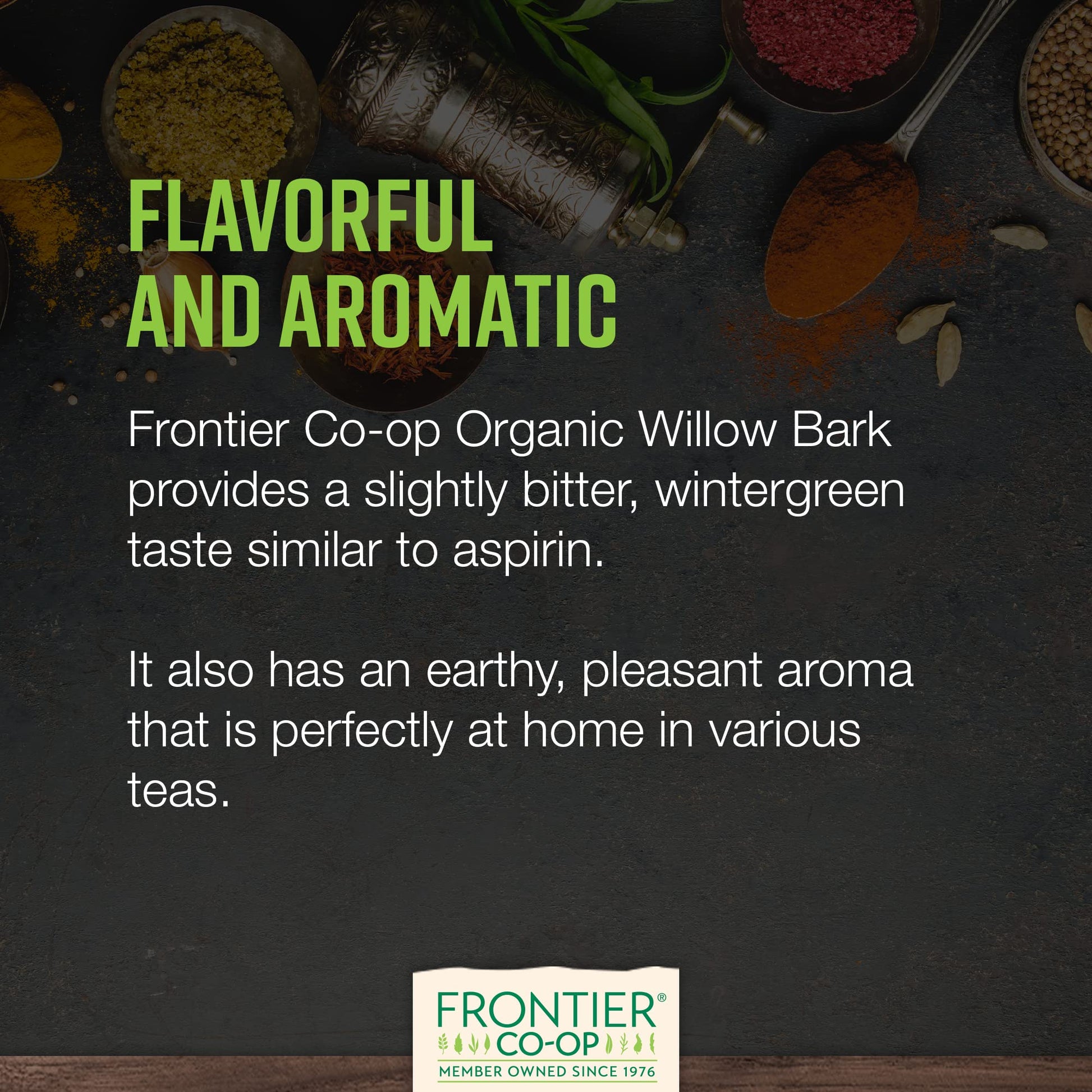 - Q: How can I prepare tea using Frontier Co-op White Willow Bark? A: To prepare tea with Frontier Co-op White Willow Bark, steep one to two teaspoons of the bark in hot water for about five to ten minutes, then strain and enjoy.