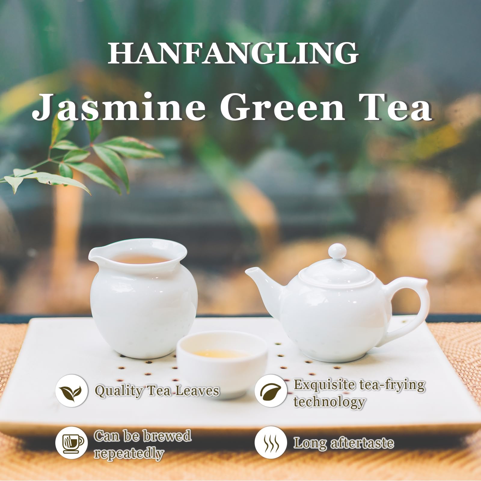 Q: What makes HANAFANGLING Jasmine Green Tea different from regular green tea?A: HANAFANGLING Jasmine Green Tea is uniquely scented with natural jasmine flowers, providing a fragrant and refreshing taste that stands out from regular green tea, which may not have the same aromatic qualities.