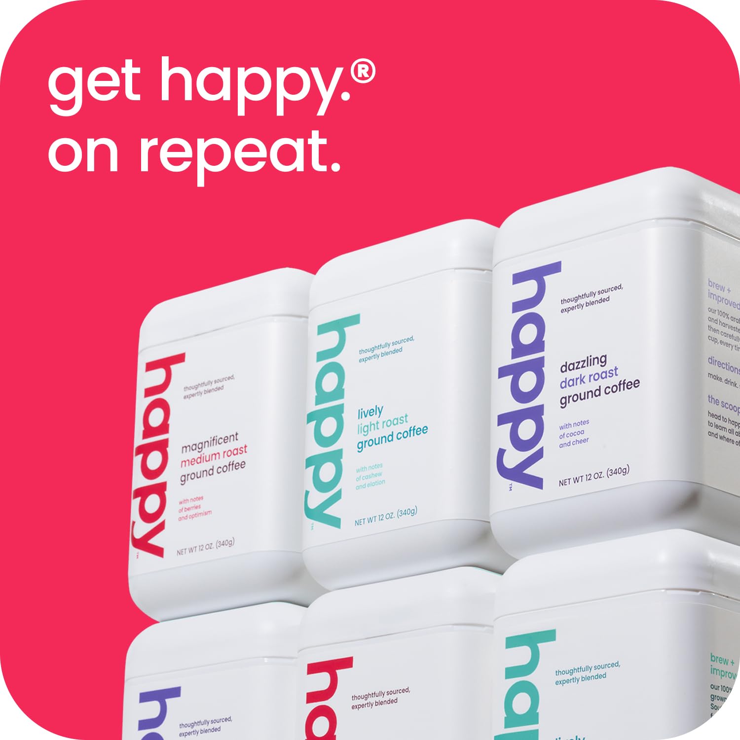 Let'S Coffee. Happy Medium Blends Are Slow Roasted For More Complex Notes, Char-Free Taste And Ultimate Smoothness. Now Thats Happy. Our 100% Arabica Beans Are Responsibly Grown And Harvested In South America, Then Carefully Roasted For A Balanced, Fruity And Chocolatey Finish In Every Sip. Allowing Our Coffees More Time In The Roaster Creates More Complex Notes, And Avoids The Harsh, Charred Flavors Common In Other Coffees. Thats Why Our Coffees Taste Like They Should Cost A Lot More Than They Do. We Care About The Planet, So We Made Our Containers Recyclable, Refillable, Reusable, And Remarkable. Don'T Believe Us? This Blend Is Ra Z Sustainability Verified, Too! Explore Our Full Line Of Happy, Including Ground And Whole Bean Coffee, Instant Coffee Packets, Pods, Lattes And Cold Brew.