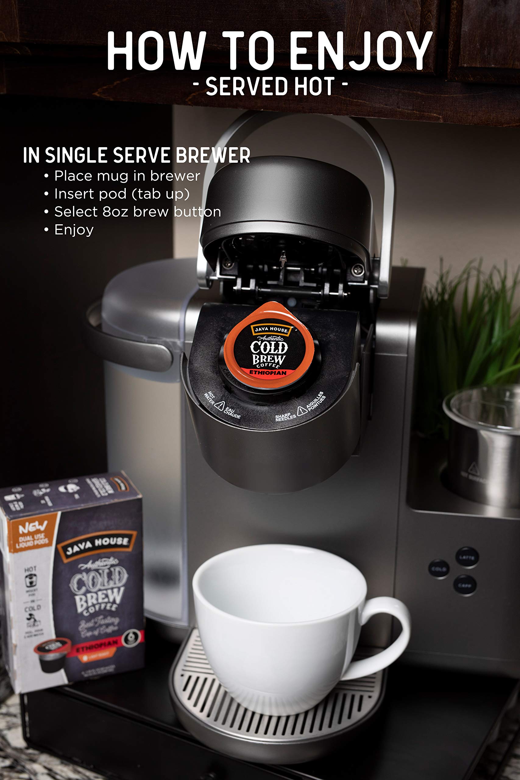 Authentically Crafted Cold-Brewed Coffee Weve Combined The Crafted, Smooth Flavor Of Cold Brew Coffee With The Convenience Of A Single-Serve Pod You Can Enjoy Hot Or Cold. Our Revolutionary Pod, Made Possible By Our Authentic Cold Brewing Process, Combines Authentic Taste With An Unrivaled Experience. Its The Best Way To Enjoy Rich, Flavorful Cold Brew Coffee At Home Or On The Go. Java House Cold Brew Is 100% Authentic Using Just Two Ingredients: 100% Arabica Coffee Beans And Cold Water. We Slowly Steep Grounds For 12 Hours In Handcrafted Small Batches Using No Preservatives, Coffee Additives, Coffee Derivatives Or Reconstituted Coffee.