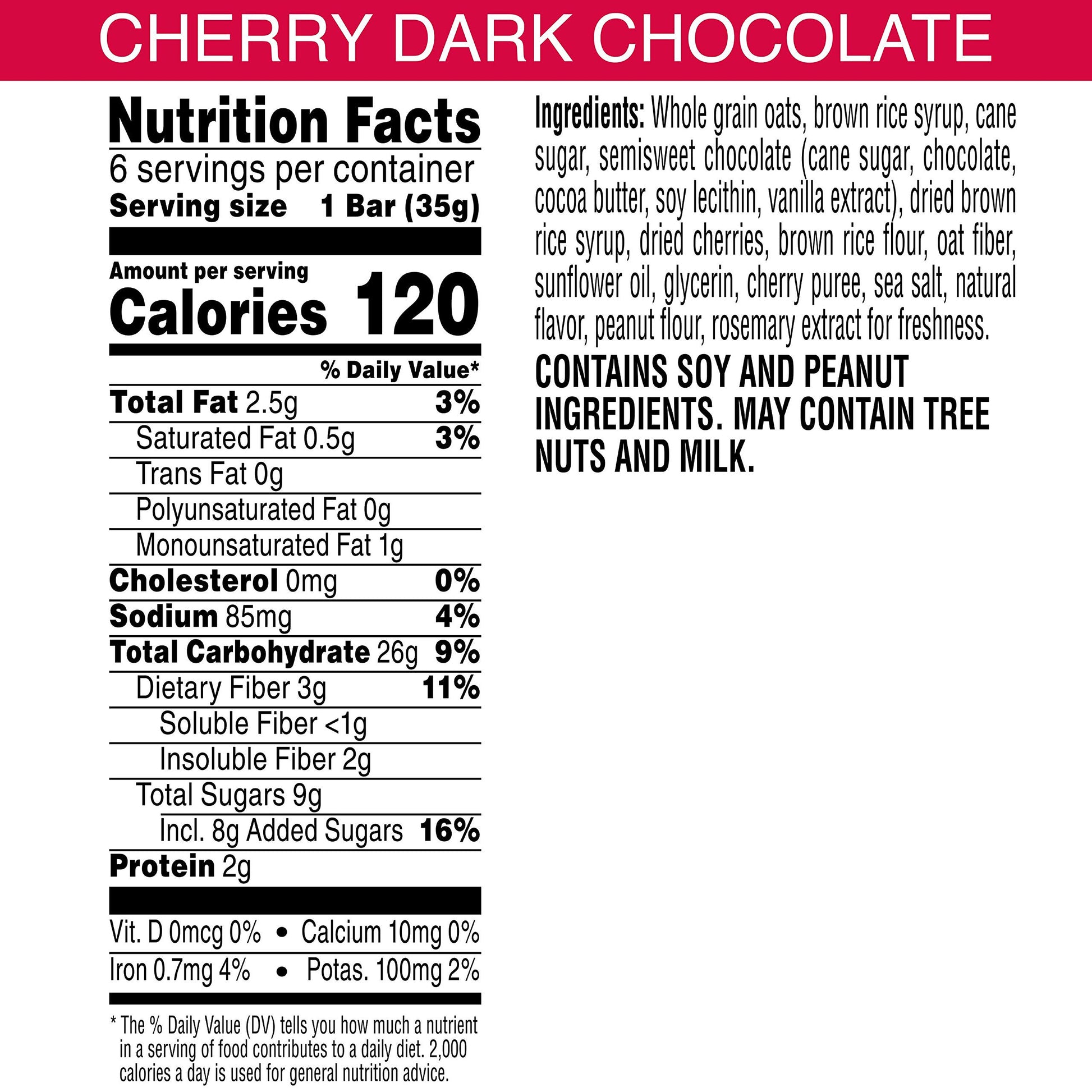 Chewy. Simple. Tasty. Kashi Cherry Dark Chocolate Chewy Granola Bars Contain Chewy Whole Grains, Rich Dark Chocolate And Red Tart Cherries, Which Make For A Bar That Nourishes Your Body And High Fives Your Taste Buds. Always Determined To Make Our Recipes Even Better, We Have Simplified Our Ingredients Because Sometimes Simple Is Better; We Hope You Think So Too. Enjoy 14G Whole Grain (48G Or More Of Whole Grain Recommended Daily) And 3G Fiber (3G Total Fat) Per 35G Serving Of Hearty Rolled Oats, Delicious Dark Chocolate And Red Tart Cherries In This Updated Chewy Granola Bar. Take This Vegan Snack With You To School, Work, Or On A Road-Trip For An Anytime Pick-Me-Up That You Are Sure To Enjoy.