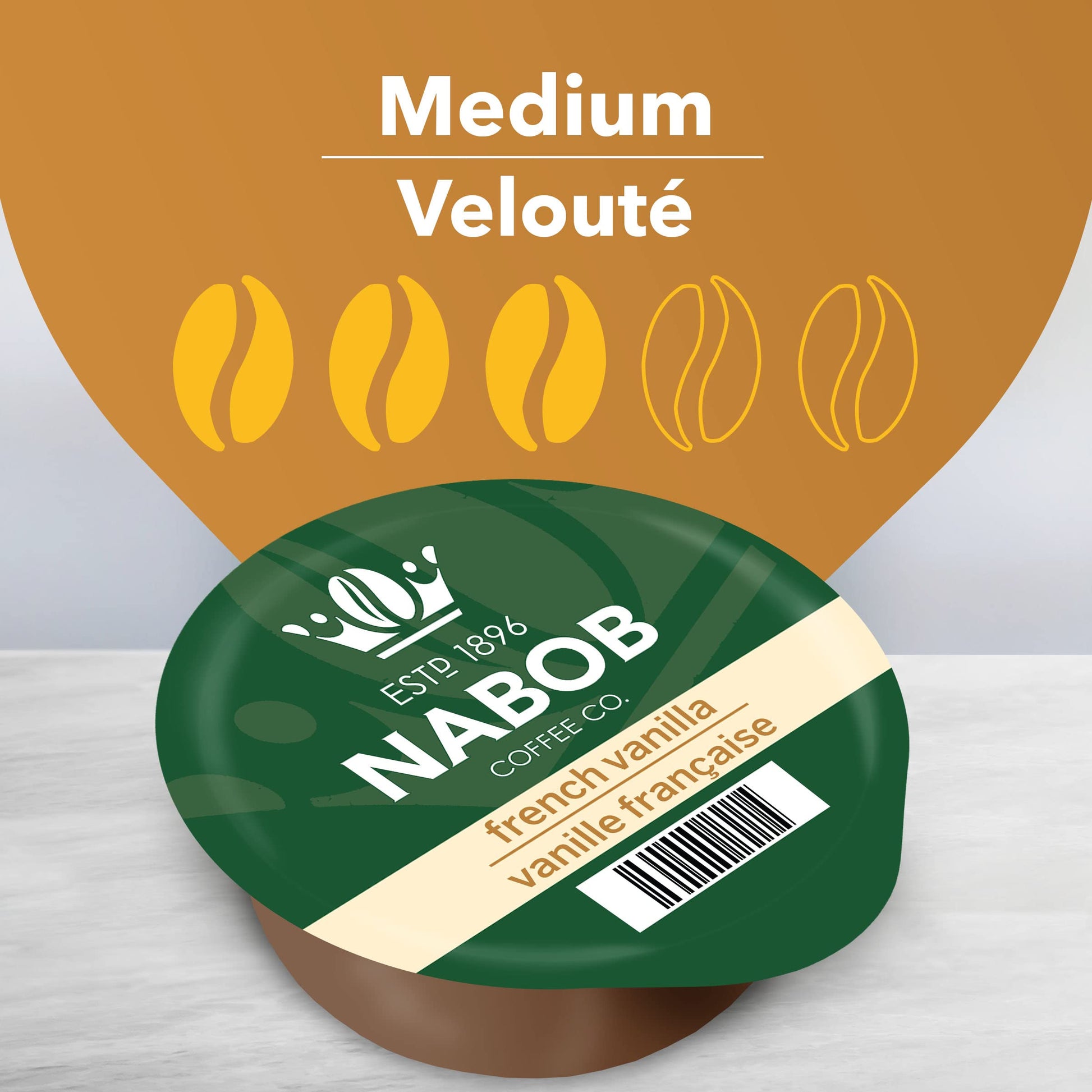 Q: What is Nabob Cafe Collection French Vanilla Coffee?A: Nabob Cafe Collection French Vanilla Coffee is a medium roast coffee made from high quality 100% Arabica beans, featuring a smooth and delightful French Vanilla flavor.