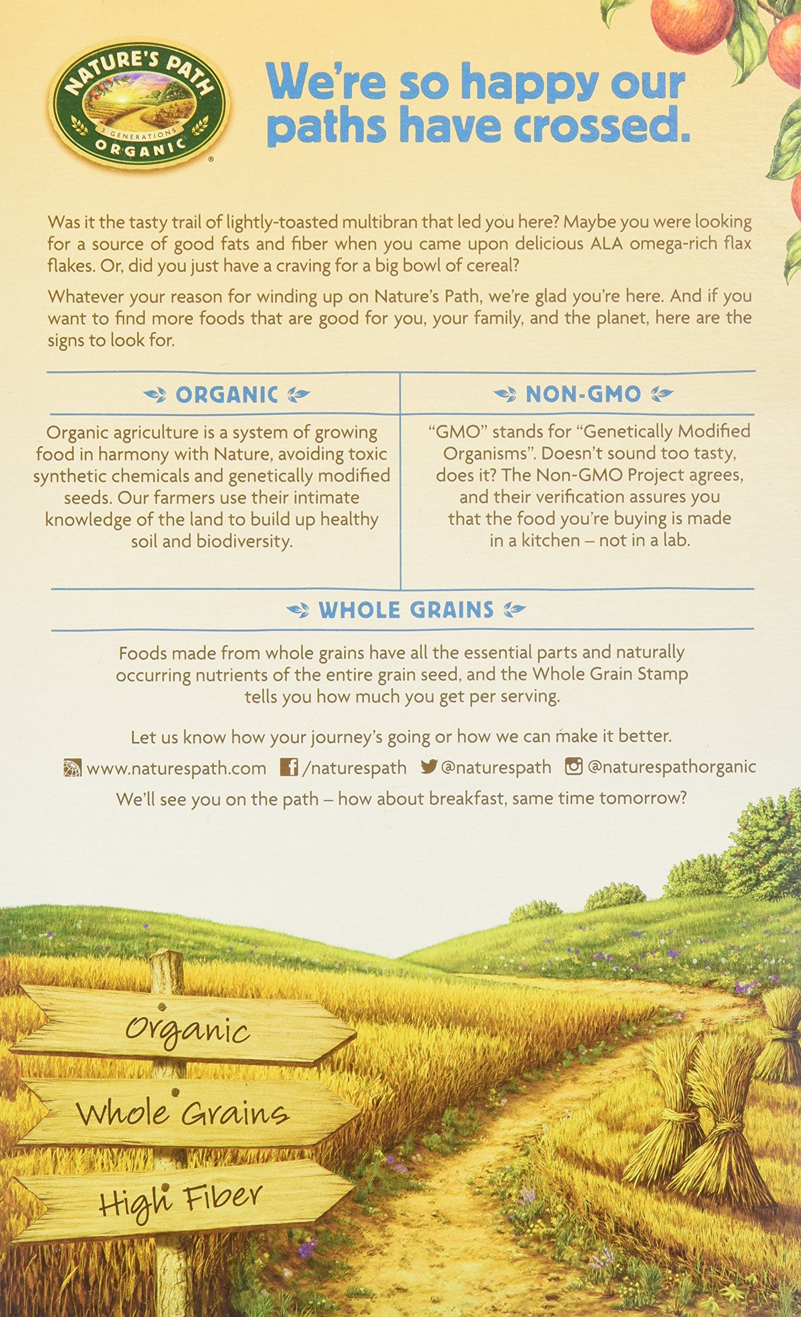 - Q: What are the main ingredients in Nature's Path Organic Flax Plus Cereal Multibran? A: Nature's Path Organic Flax Plus Cereal Multibran primarily contains crunchy organic cereal flakes made from whole grains and flaxseeds. It is a vegan product that is free from GMOs and packed with nutrients.