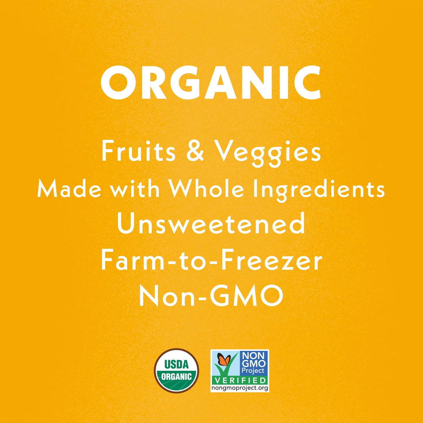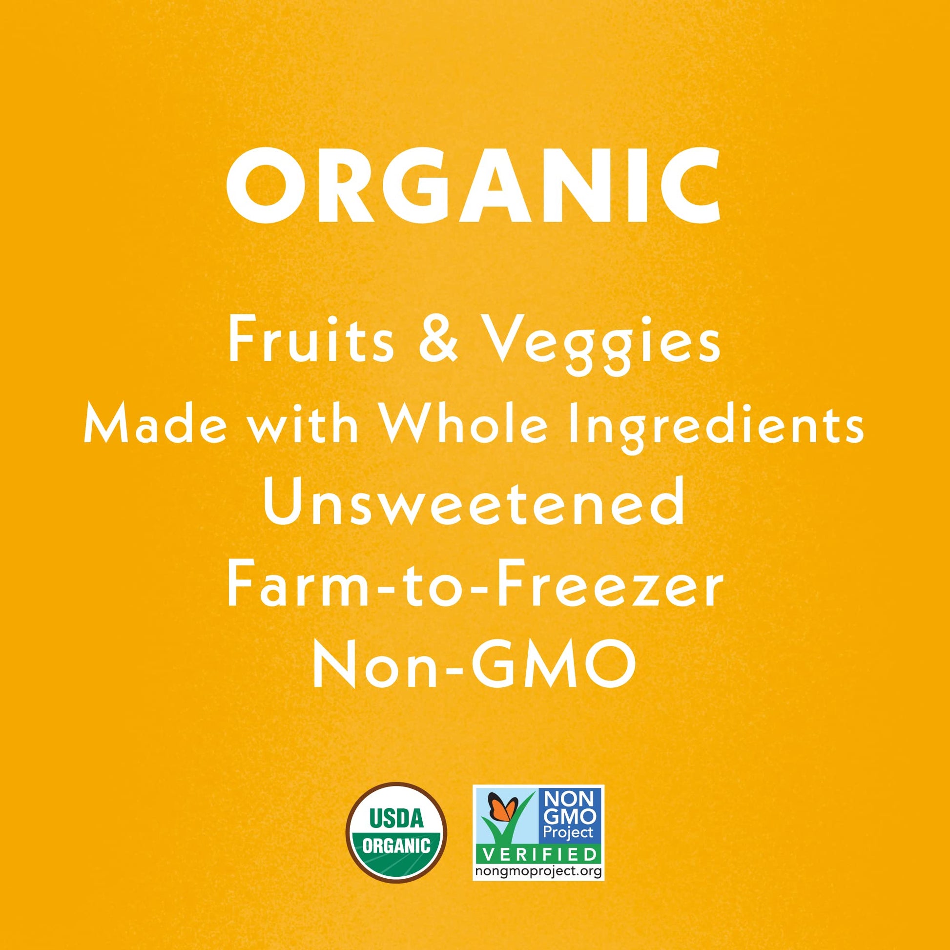 - Q: What ingredients are used in Once Upon a Farm Organic Baby Food? A: Once Upon a Farm Organic Baby Food includes wholesome ingredients such as mango, carrot, navy bean, coconut butter, and turmeric. All ingredients are USDA Organic and Non-GMO Project Verified, ensuring a healthy meal option for your baby.