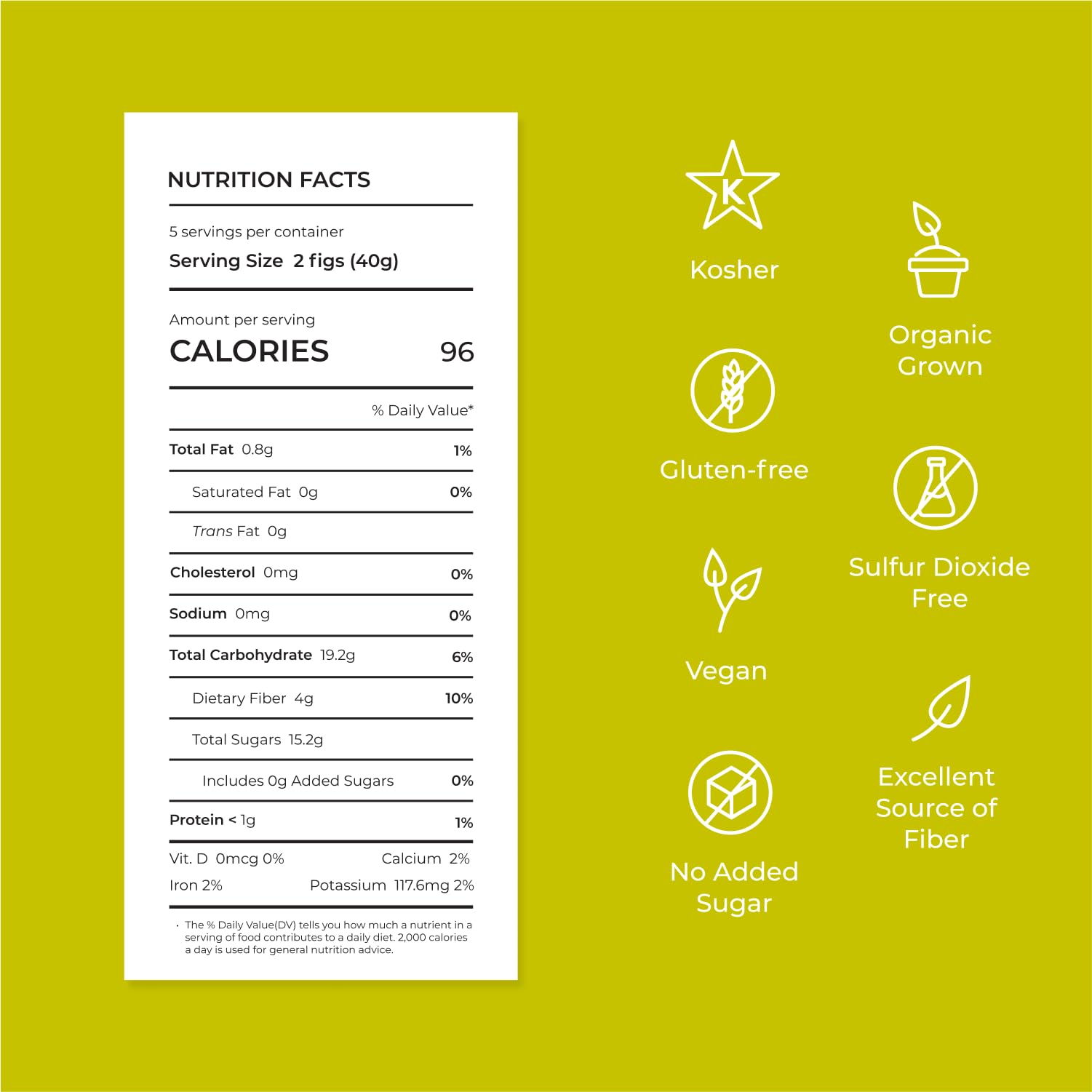 - Q: What makes these organic figs different from other dried fruits on the market? A: Our ORGANIC Turkish Dried Figs are unique due to their rich flavor, nutrient density, and the fact that they are grown without chemicals on the Mediterranean coast. They are USDA certified organic, non-GMO, and contain no added sugars or preservatives, making them a healthier choice compared to conventional dried fruits.