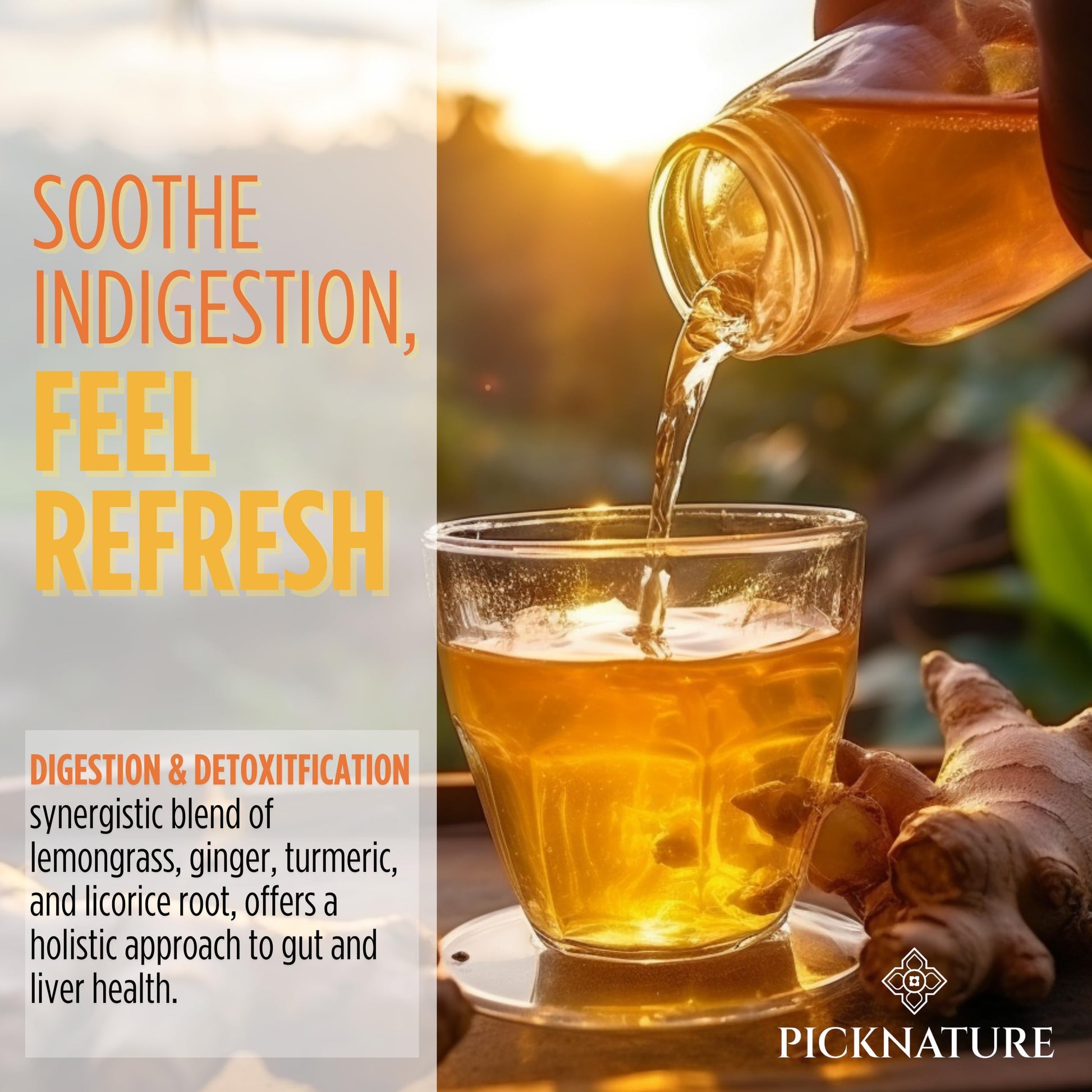Picknature'S Organic Happy Tummy Tea Is A Specialized Blend Of Lemongrass, Ginger, Turmeric, And Licorice Root, Converging Into A Soothing Elixir Tailored For Gut And Liver Health. Rich In Antioxidants And Beneficial Compounds, This Tea Offers A Harmonious Blend That Provides Both Taste And Therapeutic Benefits.
