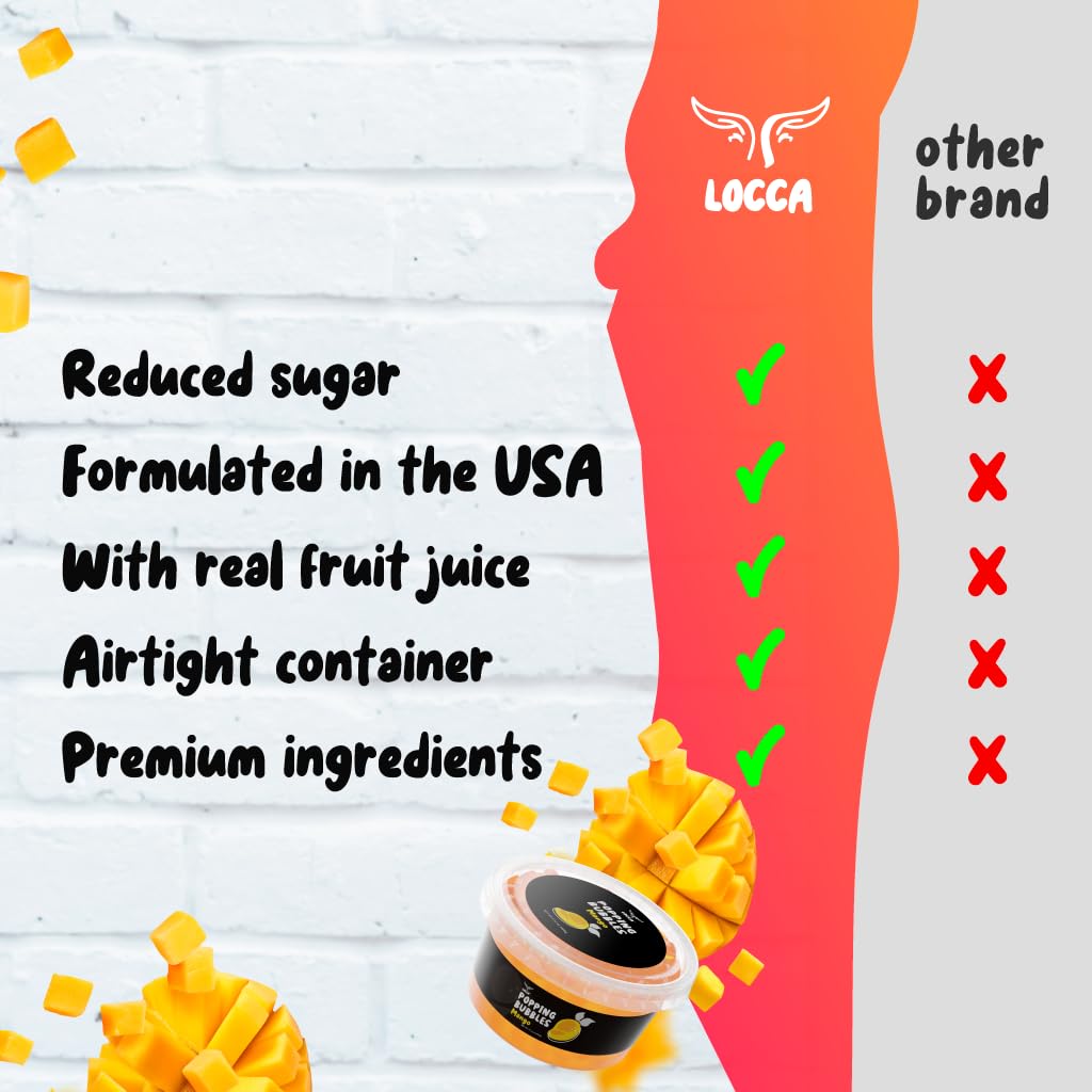 Experience The Magic Of Popping Boba: Add A Fun Twist To Your Boba Tea With Locca Premium Popping Bubbles. Our Premium-Quality Popping Boba, Also Known As Popping Bubbles Or Popping Boba Pearls, Are Made With Real Fruit Juice And Add A Burst Of Flavor To Any Drink Sweet Treat. Simply Pour A Small Amount Of The Bursting Boba On Top Of Your Boba Tea Or Ice Cream And Watch As They Dance And Pop In Your Cup. Locca Popping Bubbles In Strawberry, Lychee, Mango, And Blueberry | When It Comes To Taste, Locca Popping Boba Pearls Truly Stand Out. Our Strawberry Boba Aka Strawberry Popping Boba Are Bursting With The Sweet And Juicy Flavor Of Ripe Strawberries. Our Lychee Popping Boba Is A Unique And Exotic Treat, With A Tropical Taste That Will Transport You To Faraway Lands. Mango Popping Boba Is Zesty And Vibrant, With A Flavor That Is Hard To Resist. And Our Blueberry Popping Boba Is A Classic Favorite, With A Sweet And Fruity Taste That Is Sure To Satisfy. No Matter Which Flavor You Choose, You Can Be Sure That Locca Premium Popping Pearls Are A Delicious And Satisfying Addition To Any Drink Or Treat.