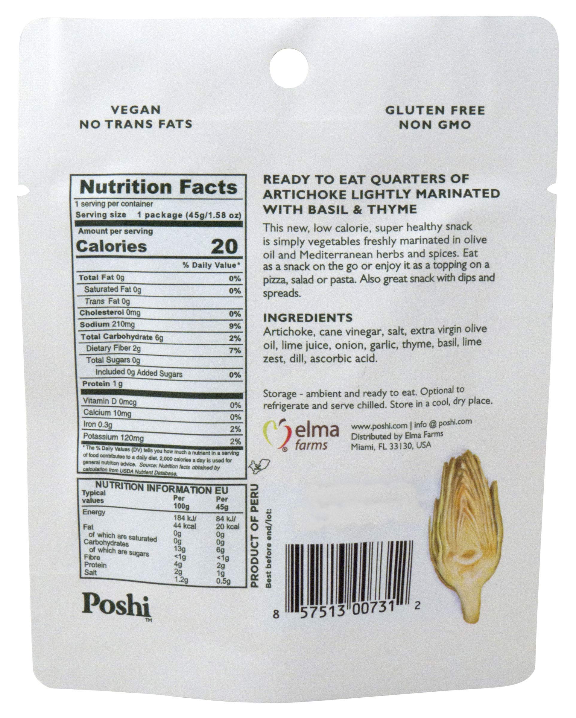 Poshi Marinated Snack Gluten Free Non-Gmo 1.34 Oz Each Artichokes (5-Pack)