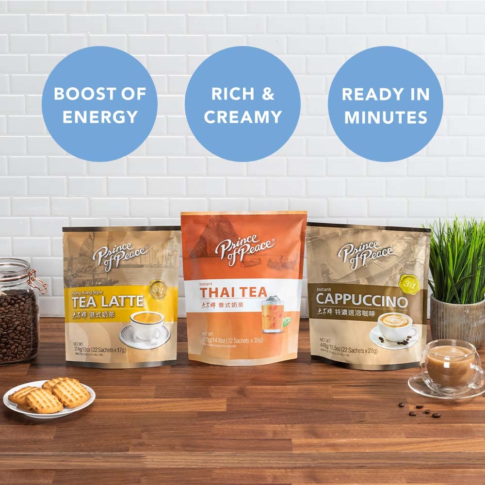 This Prince Of Peace Instant Thai Tea 3-In-1 Beverage Has A Creamy Texture And Rich Taste That Reminds You Of A Thai Street Market. The Authentic Thai Tea Recipe Is Delicious Hot And Cold. This Prince Of Peace Creation Is Easy To Make And Brews In Minutes. The Bag Contains 22 Servings Per Bag.