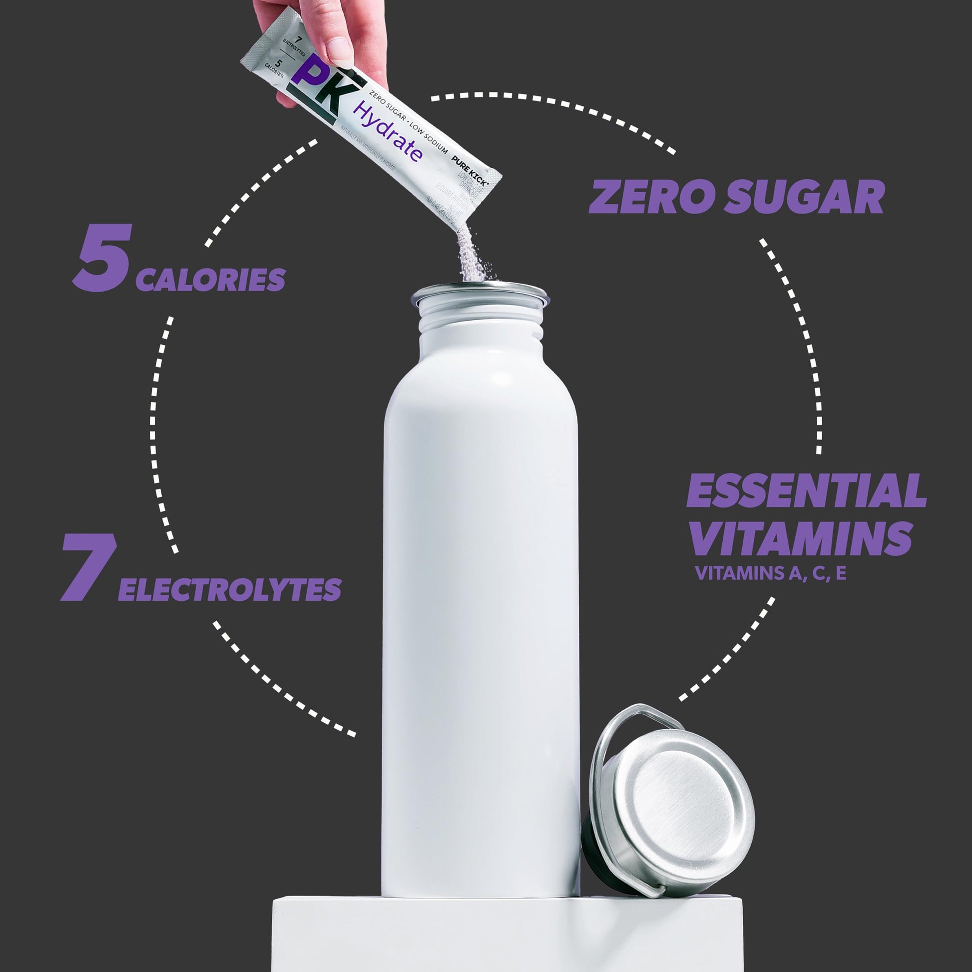 Q: What are the key benefits of using Pure Kick Hydration Pitcher Pack?A: The Pure Kick Hydration Pitcher Pack provides an easy and affordable way to enhance hydration and energy levels, making it ideal for sports teams or group activities. With zero sugar, it's a guilt-free option that also includes essential nutrients like Zinc, Manganese, Chromium, and Selenium.