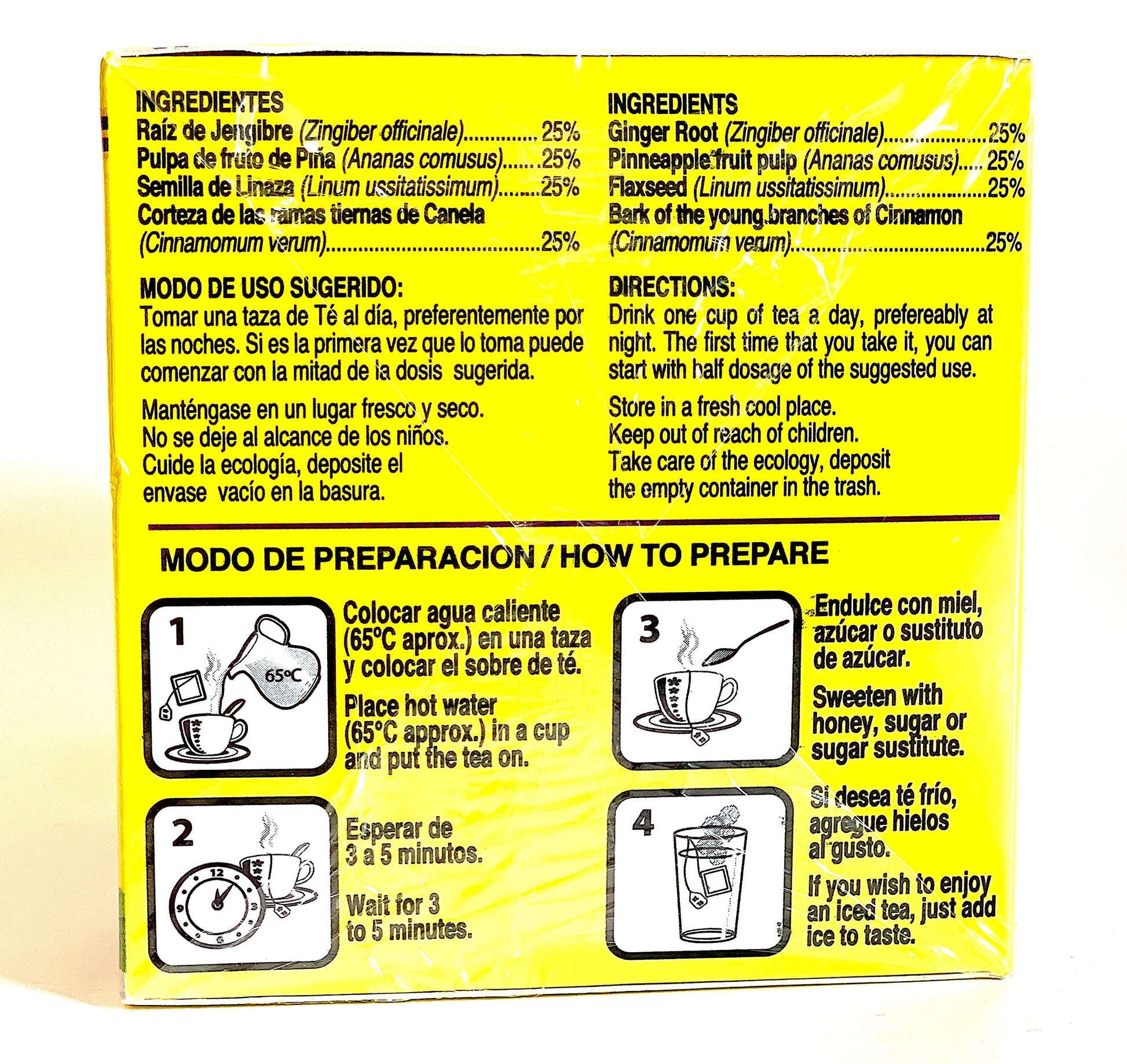 Chupa Panza Te De Jenjibre Is Not Just For Your Figure But Also For Your Health Sure Chupa Panza Has Been A Key Part Of Their Diet And Exercise Efforts And Reach Their Target Goal. Yes Its A Delicious Blend Of Ginger, Cinnamon Pineapple And Flax Seed, And Although The Blend Seems Simple The Results Speak For Themselves. But Did You Know That Chupa Panza Does More Than Help You Reach Your Goals? When You Get Rid Of Stored Toxins In Your Body You Help Your Overall Health. Many Users Experience Clearer Skin, Fewer Pimples And Acne Flair Ups. They Love That They Can Go To The Bathroom On A Regular Schedule And Often Feel Less Bloated And More Energetic. All This From Drinking Chupa Panza Ginger Tea Once Per Night. We Invite You To Try Chupa Panza Tea And See What It Can Do For You. El Te Chupa Panza Con Jenjibre, Canela, Pina Y Linaza No Solo Ayuda A Llegar A Tus Metas De Perdida De Peso, Pero Tambien Apoya A Tu Buena Salud. Al Eliminar Las Toxinas En Tu Cuerpo Y Ayudarte A Mantenerte Regular Y Apoyar Tu Metabolismo Experimentas Otros Beneficios. Por Ejemplo Puede Ayudar A Mantener Tu Piel Limpia Y Libre De Espinillas. Minimiza El Estrenimiento E Inflamacion Abdominal. Todo Mientras Te Apoya A Llegar A Tu Meta De Perdida De Peso. No Esperes Mas Y Prueba Lo Que Chupa Panza Puede Hacer Por Ti! Potential Side Effects: This Is A Cleansing And Detox Tea. Although The Formula Is Gentle Everyone Experiences This Differently. You Will Be Going To The Bathroom More Often. Often During The First Few Times You Use It You May Experience Looser Bowel Movements. If This Is Unpleasant You May Drink Only Half A Cup Per Day. Do Not Use More Than One Tea Bag A Day. Immediately Discontinue Use If You Experience Any Adverse Reaction. Please Do Not Use If You Are Allergic To Cinnamon, Pineapple, Flax Seed Or Ginger.