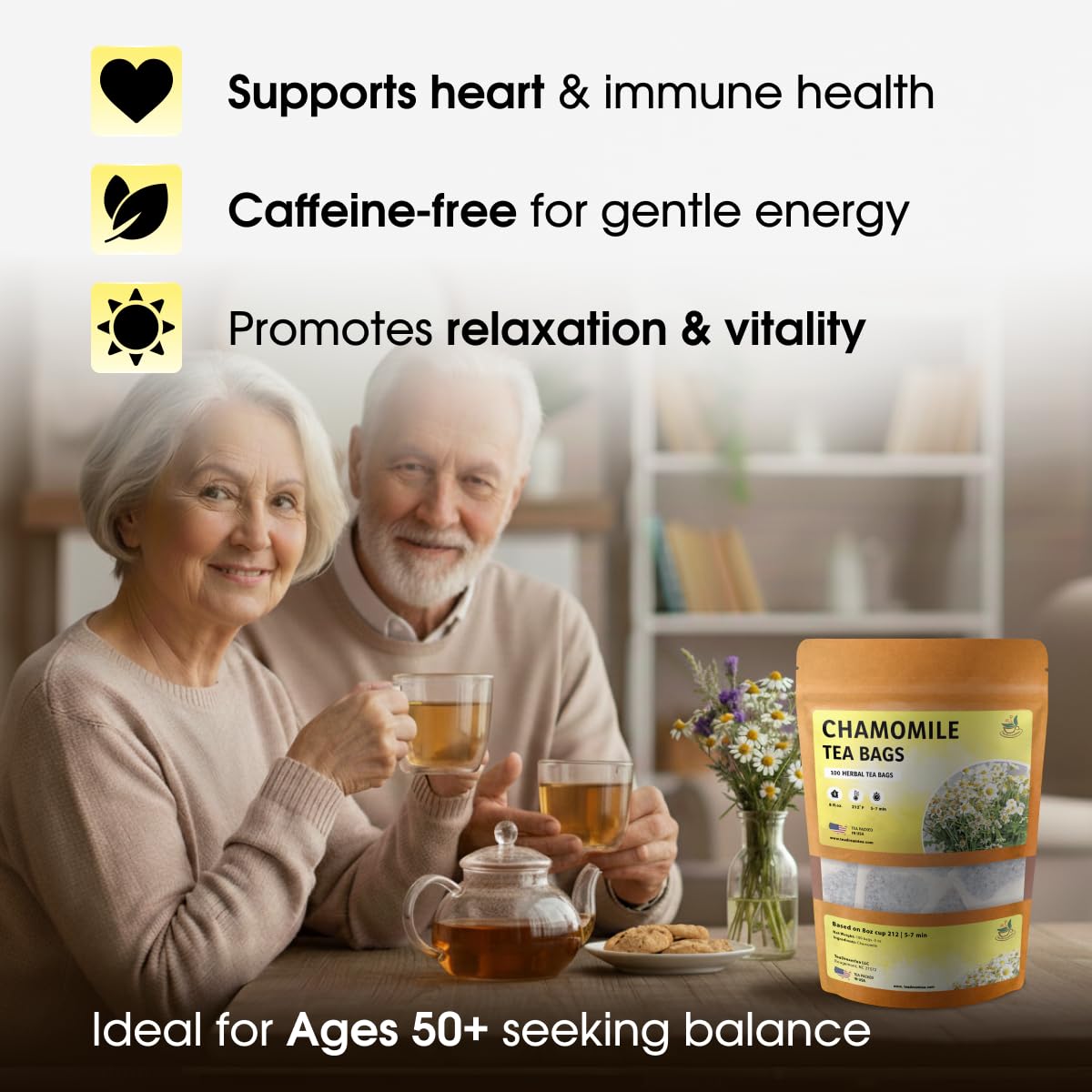 Key Features:- 100 chamomile tea bags per pack, perfect for daily use.