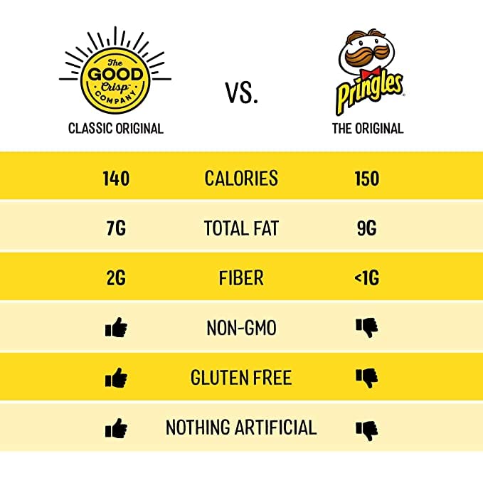Q: What makes The Good Crisp Company Potato Chips a healthier snack option?A: The Good Crisp Company Potato Chips are made with better ingredients that are non-GMO, and they are free from dairy, nuts, and soy, providing a guilt-free snack option without compromising on taste.