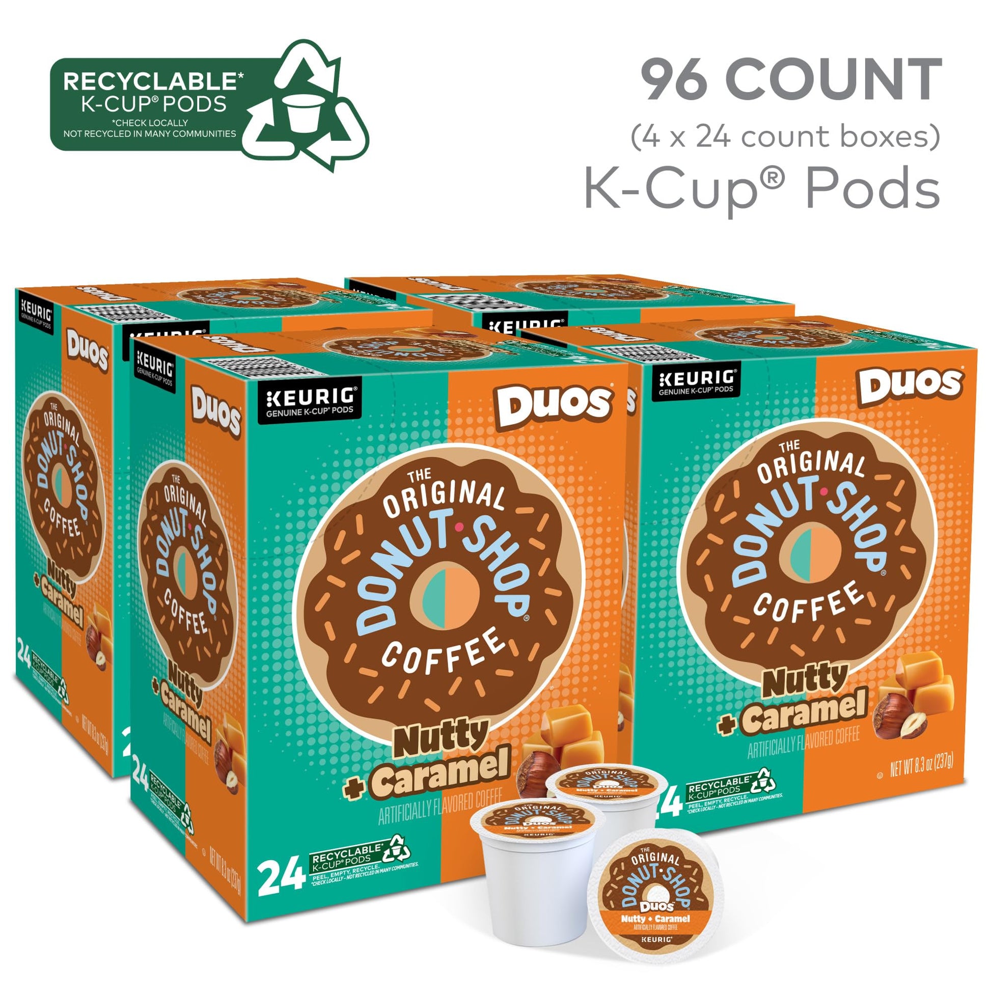 Two bold flavors that are great on their own, but even better together. The Original Donut Shop® Coffee Duos™ Keurig K-Cup coffee pods blend two flavors that complement each other and the roast of the beans, giving you a uniquely delicious experience in every cup. Nutty + Caramel K-Cup coffee pods feature toasted nuts and buttery caramel flavors come together in a sweet reward that’s perfect for days that get a little too nutty. And the ones that just aren’t nutty enough. These medium roast, caffeinated K-Cup coffee pods are engineered for guaranteed quality and compatibility with all Keurig K-Cup pod single serve coffee makers.