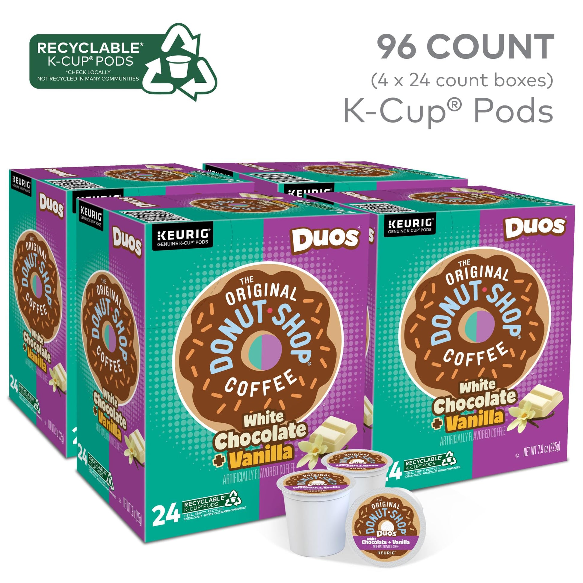Two bold flavors that are great on their own, but even better together. The Original Donut Shop Coffee Duos™ Keurig K-Cup coffee pods blend two flavors that complement each other and the roast of the beans, giving you a uniquely delicious experience in every cup. White Chocolate + Vanilla K-Cup coffee pods feature a mouthwatering mix filled with the familiar flavors of creamy white chocolate and vibrant vanilla. Treat yourself to a moment – or even better, several moments – of pure bliss. These medium roast, caffeinated K-Cup coffee pods are engineered for guaranteed quality and compatibility with all Keurig K-Cup pod single serve coffee makers.
