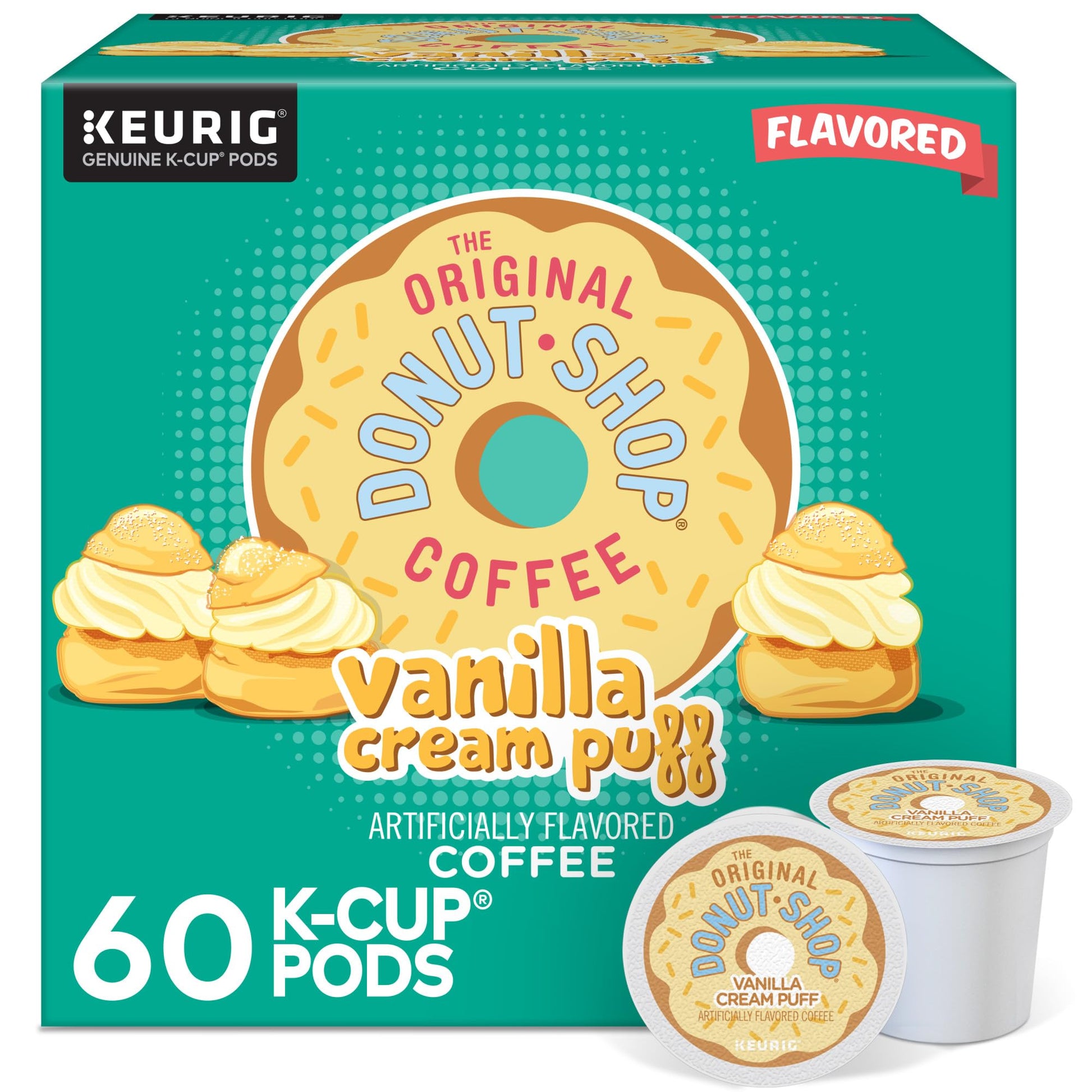 Q: What is the flavor profile of The Original Donut Shop Vanilla Cream Puff Coffee?A: The Original Donut Shop Vanilla Cream Puff Coffee features a bold vanilla custard flavor, complemented by hints of golden pastry, making it a delightful medium roast coffee perfect for any time of the day.