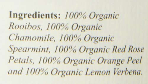 - Q: What are the main ingredients in Cape Town Rooibos Tea? A: Cape Town Rooibos Tea is made from 100% Organic Rooibos (Aspalathus Linearis), along with 100% Organic Chamomile, 100% Organic Spearmint, Red Rose Petals, 100% Organic Orange Peel, and 100% Organic Lemon Verbena, creating a unique blend of sweet, fruity, floral, and minty flavors.