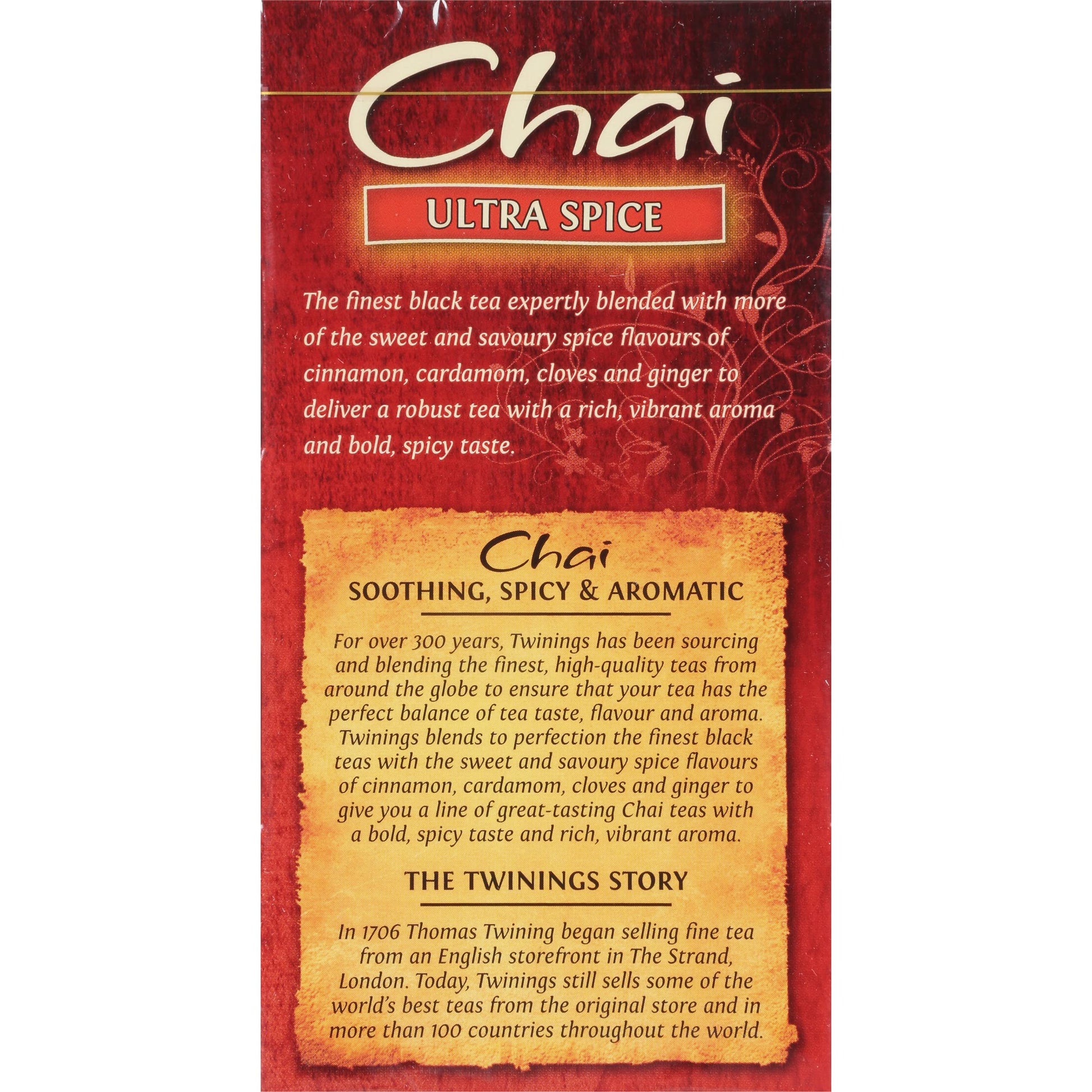 Twinings Chai Tea, Ultra Spice Chai Tea Bags With Cinnamon, Ginger, Cardamon, Clove For A Spicy Chai Tea Latte, 20 Tea Bags
