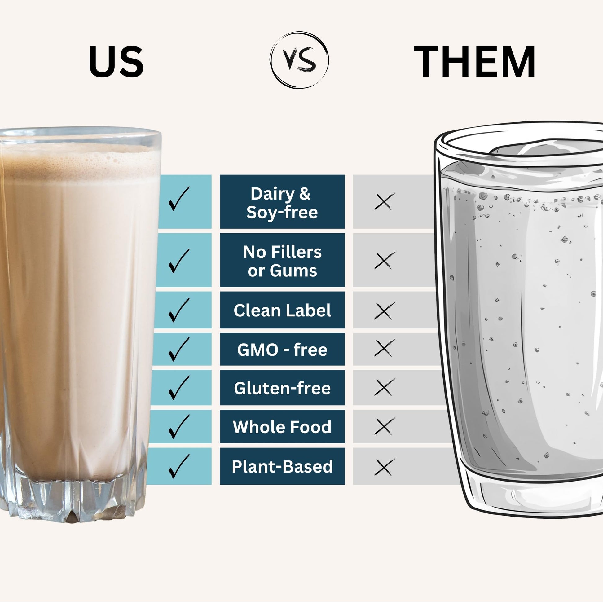 Introducing our Plant-Based Kids Protein Shake Powder - made with real whole foods and specifically formulated for ages 2 to 12. This exceptional product is crafted to provide your child with the essential nutrients they need for optimal growth and development. As the best protein powder for kids, our formula is designed to support the nutritional needs of young, growing bodies with ease and efficacy. If youre looking a for a great way to get protein kids will love, get our kids vegan protein shake. Our protein powder for kids stands out as a superior choice for parents seeking a wholesome, organic nutrient powder shake. Each serving of this kids protein powder delivers a powerful blend of plant-based protein and 25 essential vitamins and minerals, ensuring comprehensive nutrition. The dairy-free composition makes it ideal for children with lactose intolerance or those following a vegan diet. Thus, this vegan protein powder is a versatile addition to any dietary regimen. Our Kids Protein Shake supports weight gain for kids in a healthy manner, promoting balanced growth and development. Crafted with care, our kids chocolate protein powder transforms into a delightful kids chocolate protein shake, a perfect treat that doubles as a nutritious kids snack. The delicious chocolate flavor is sure to be a hit, making nutrition enjoyable for your little ones. Our kids growth protein shake is an excellent choice for active children, or picky eaters, providing them with the energy needed for daily activities. As an organic kids protein shake, it ensures that your child receives only the best, free from artificial additives. The inclusion of healthy chocolate milk powder for kids enhances the taste while maintaining nutritional integrity. Parents can trust our kids nutrition shake to deliver consistent quality and results. This protein shake for kids is a must-have in every household, offering peace of mind that your child is receiving complete nutrition. The protein powder for kids is easy to prepare, making it a convenient option for busy mornings or after-school snacks. Choose our Plant-Based Kids Protein Shake Powder for a reliable, nutritious solution that supports healthy development and growth in children. With this kids protein drink, youre making a commitment to quality nutrition for your childs future.