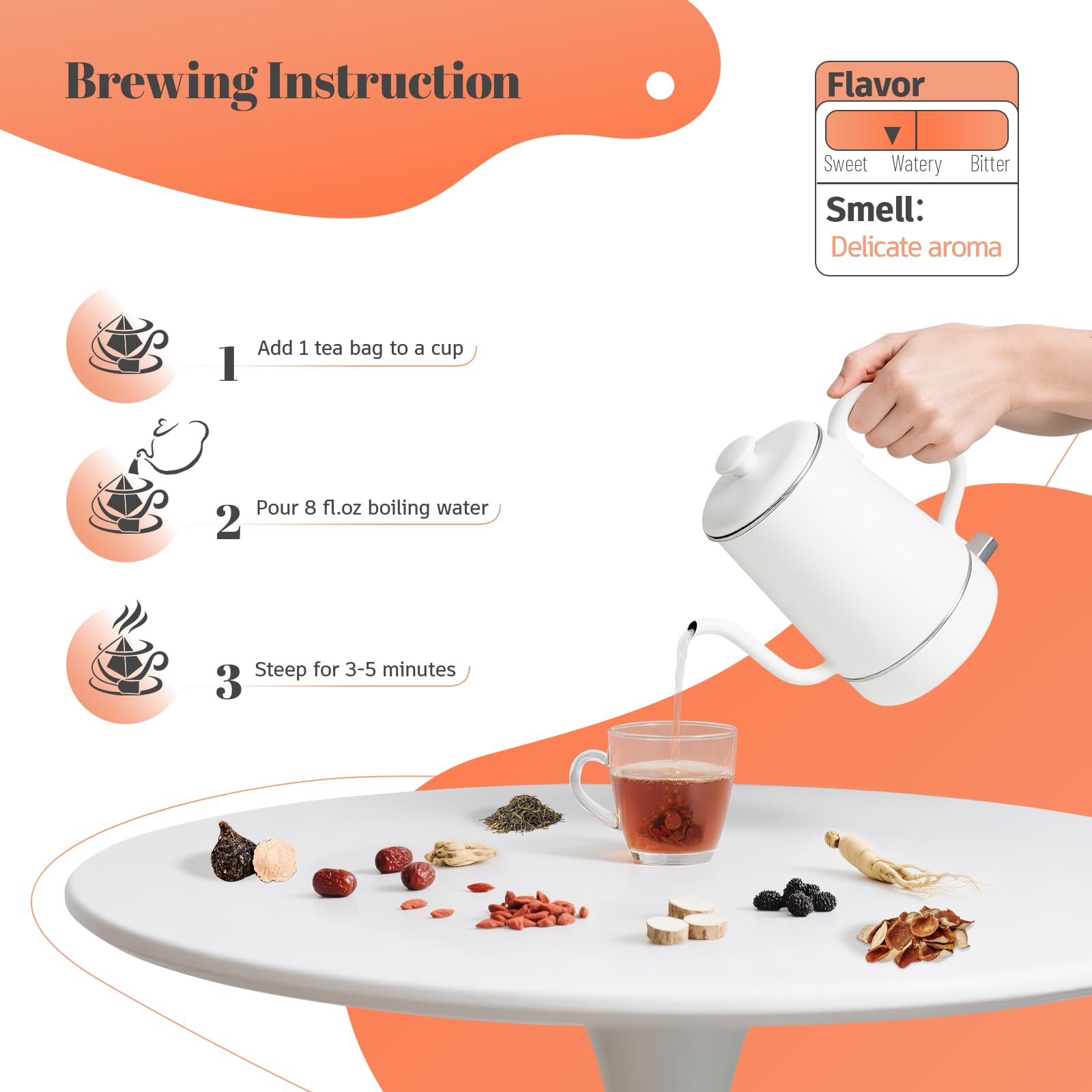 - Brews a mellow flavor with sweet notes of red dates and wolfberries.