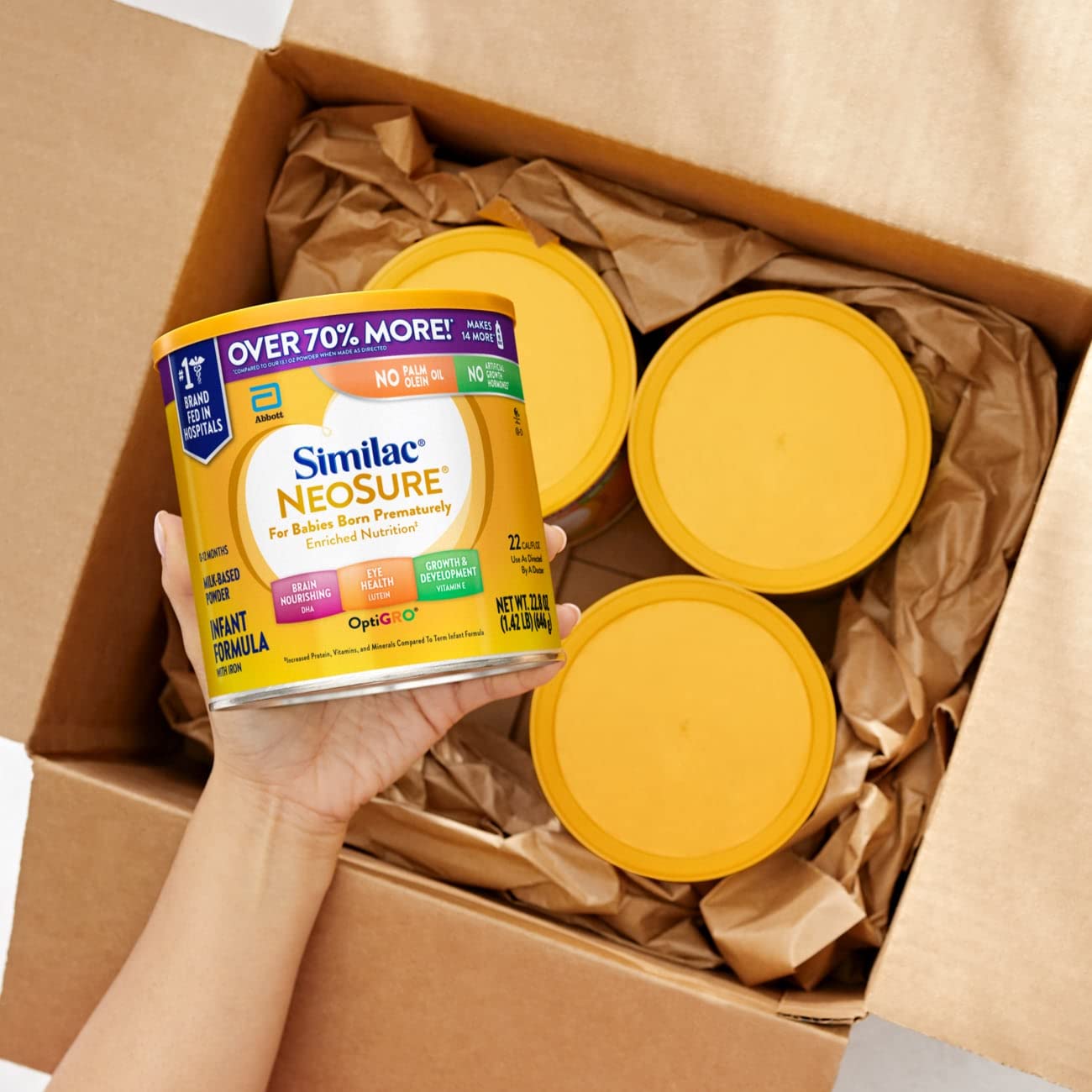 - Q: What size is the Similac NeoSure packaging? A: Similac NeoSure is available in a 22.8-ounce value can, and it typically comes in packs of four. This size is ideal for ensuring you have enough formula on hand for your baby's feeding needs.