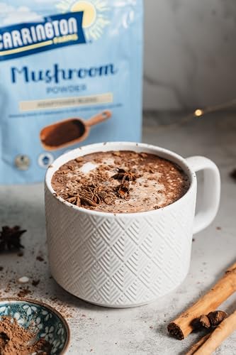 Unleash the power of nature with our extraordinary Mushroom Powder, crafted for optimal well-being. Our special mushroom powder blend contains Lions Mane, known to enhance memory, as well as Reishi and Chaga mushrooms, known to support stress reduction. Carrington Farms delicious mushroom powder blend comes in a convenient, resealable pouch that doesnt require refrigeration. Mix into coffee, tea, hot chocolate and smoothies for an added boost of nutrition. Stir into soups, stews, and your favorite recipes for a delicious Umami flavor that gives your dishes enhanced depth and richness.