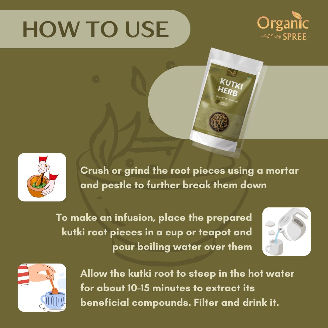 - Q: How should I use Kutki Herb for optimal results? A: Kutki Herb can be consumed in various forms, including as a powder, tea, or in capsules. For powdered form, mix a small amount with warm water or add it to smoothies. Always consult a healthcare provider for personalized dosage recommendations.