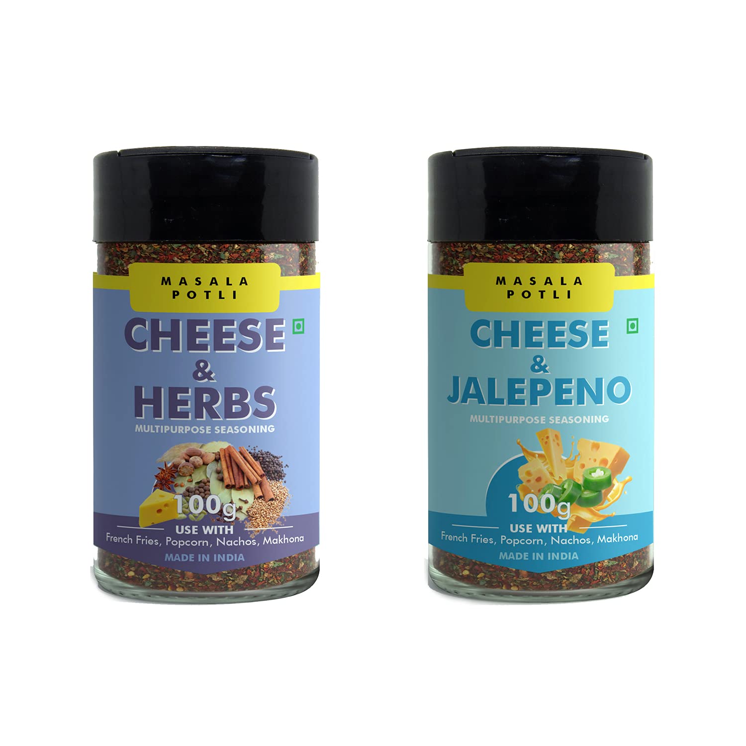 Q: What flavors are included in the MASALA POTLI seasoning pack?A: The MASALA POTLI seasoning pack includes six delicious flavors: Green Chilly & Lemon, Cheese & Herbs, Tangy Tomato, Chapata Mint, Desi Roasted, and Peri Peri.