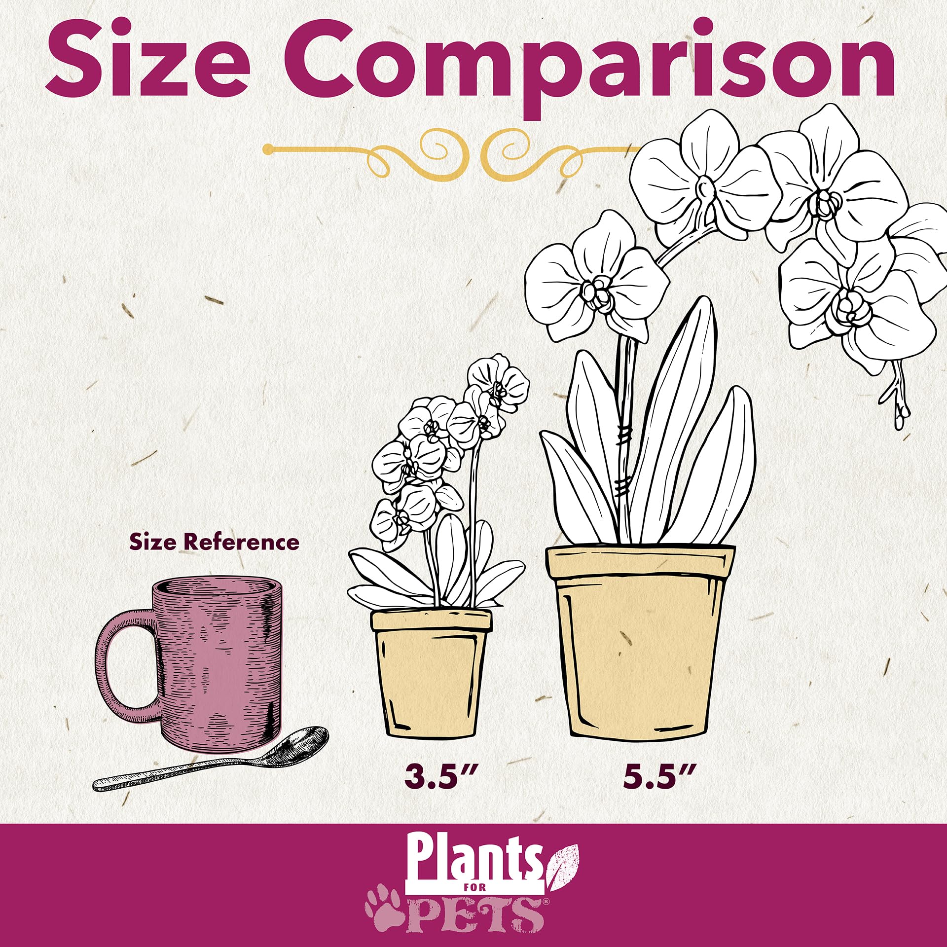 Q: What size pot does the Purple Phalaenopsis orchid come in?A: The Purple Phalaenopsis orchid comes in a stylish 5-inch ceramic orchid pot, designed to complement its vibrant flowers and enhance your home decor.