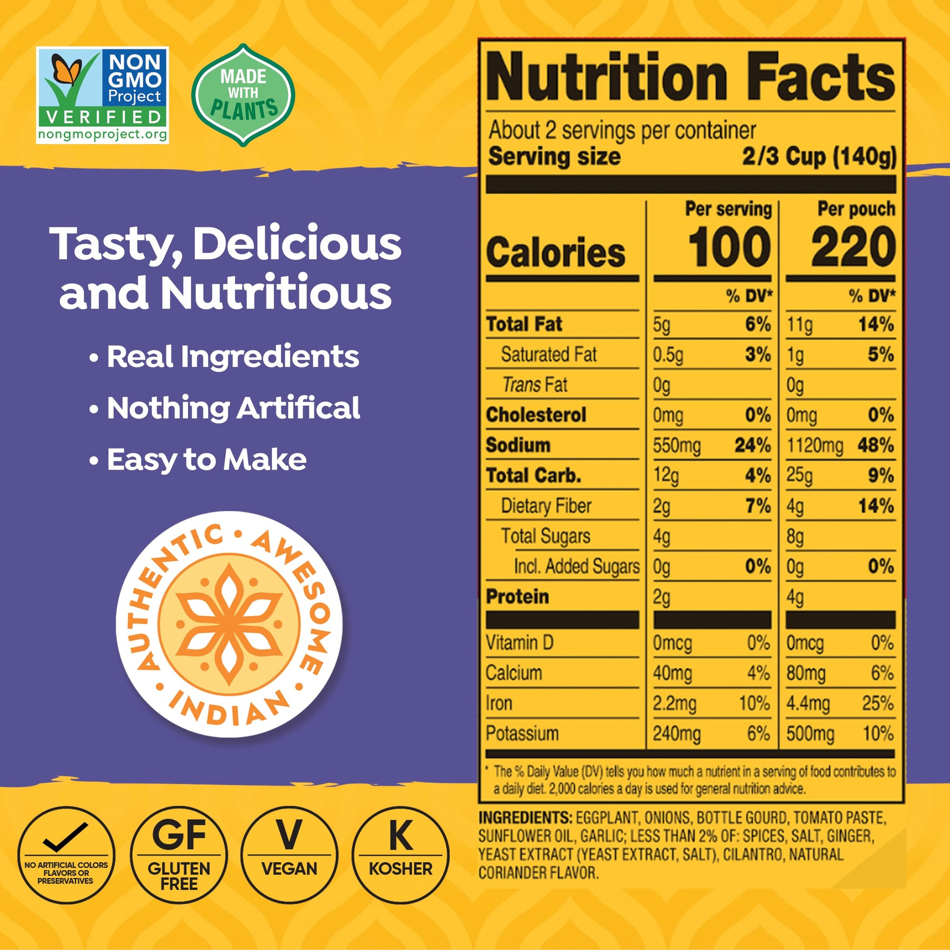 Q: What dishes can I pair with Tasty Bite Punjab Eggplant?A: Tasty Bite Punjab Eggplant is versatile and can be paired with naan, roti, or rice, making it a great addition to any Indian meal or as a flavorful side dish.