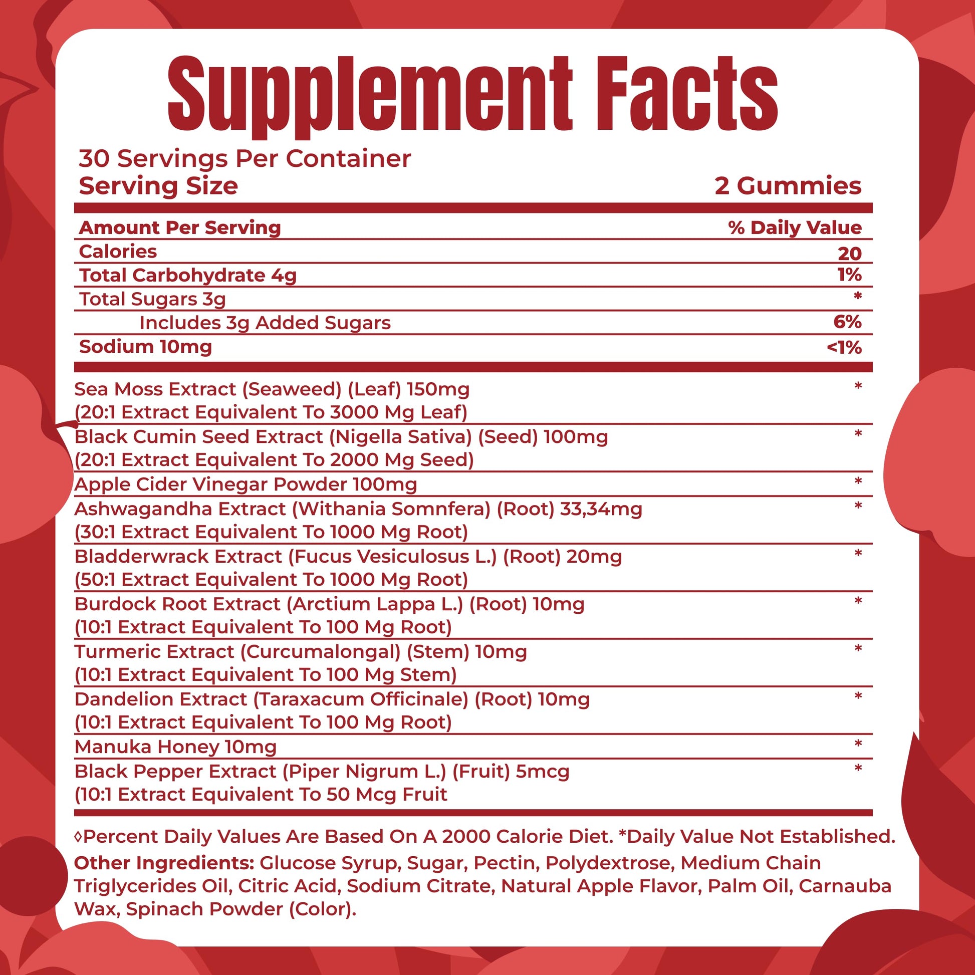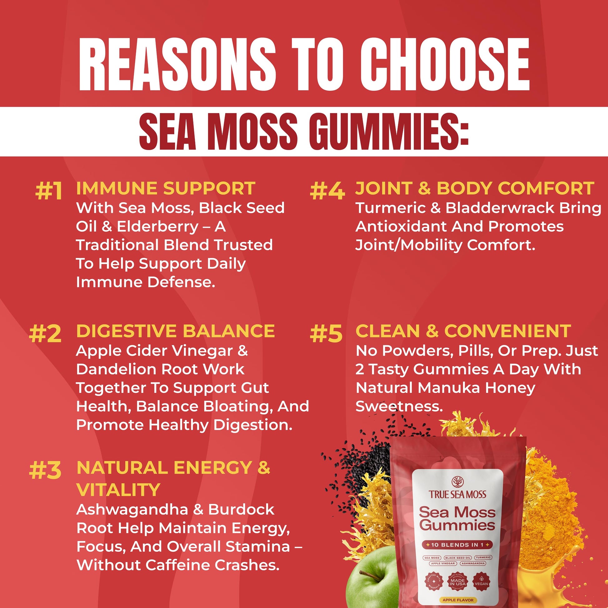 - Convenient Gummy Format: An easy alternative to powders, compact pieces, or sea moss gel; two gummies a day provide a straightforward way to stay consistent with your dietary product plan.