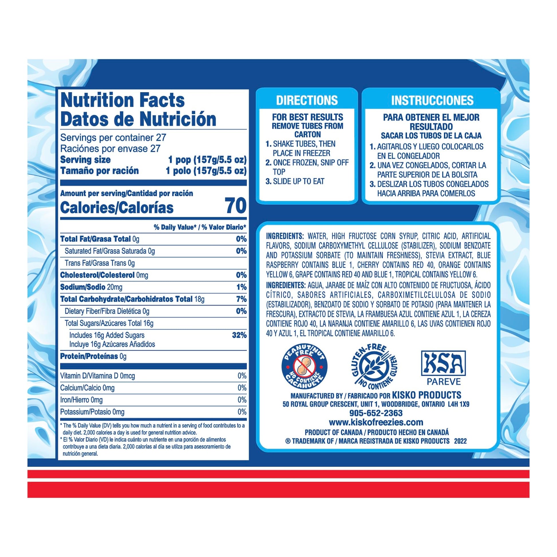 Kisko Freezies Ice Pops, Bulk Variety Giant Freezies, 27 Pieces