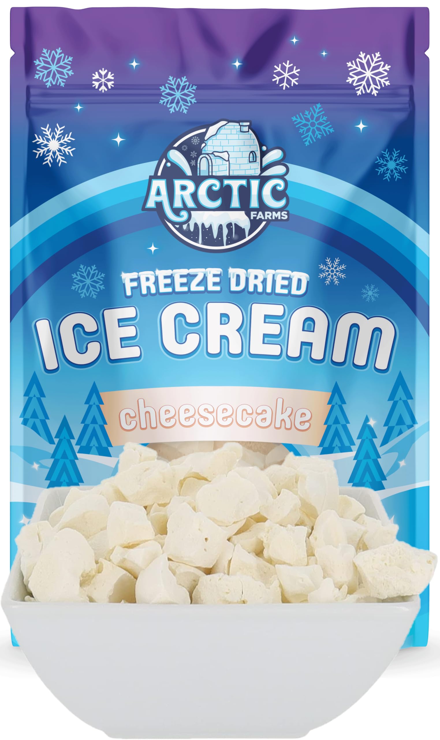 • Q: What flavors are available for Arctic Farms Freeze Dried Ice Cream Bits? A: The Arctic Farms Freeze Dried Ice Cream Bits are available in various flavors, including the popular Cheesecake flavor.
