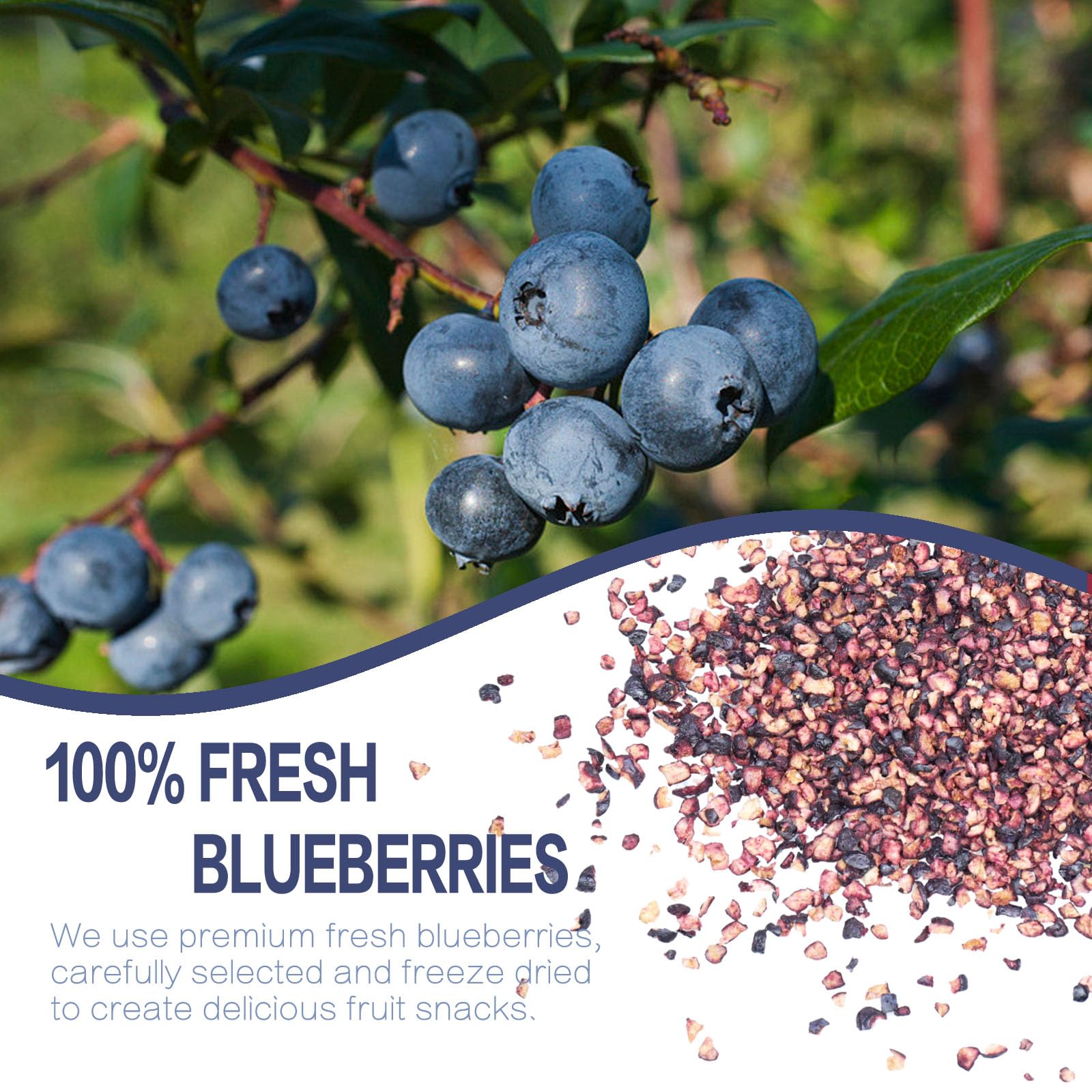 - Q: What are freeze-dried blueberries and how do they differ from regular blueberries? A: Freeze-dried blueberries are made by removing moisture from fresh blueberries through a freeze-drying process. This method retains the fruit's natural flavor, nutrients, and aroma, offering a crispy texture and sweet-sour taste, unlike regular blueberries, which contain more water and have a softer texture.