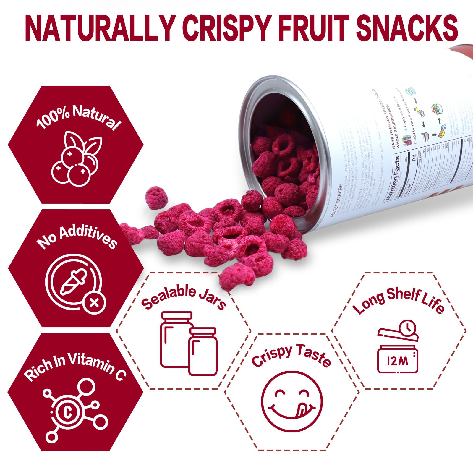 - Q: Are freeze dried raspberries a healthy snack option? A: Yes, freeze dried raspberries are a healthy snack option. They are packed with vitamins and nutrients, making them a great choice for a quick energy boost. Their natural sour flavor is refreshing and perfect for those seeking a nutritious, guilt-free snack.