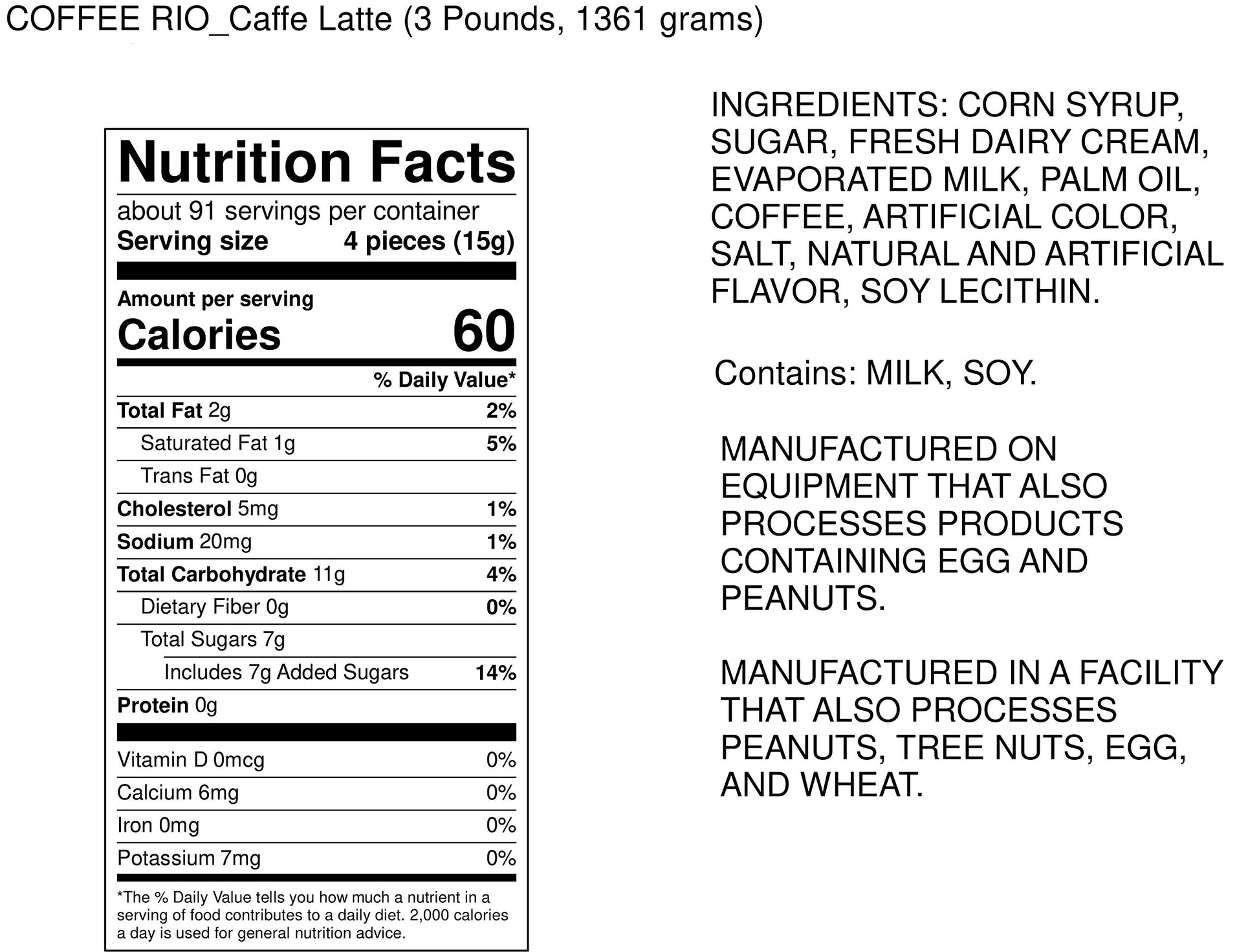 Adams & Brooks Coffee Rio Coffee Candy Bulk Candy 3 Pound Bag - Individually Wrapped Coffee Candies (Caffe Latte)