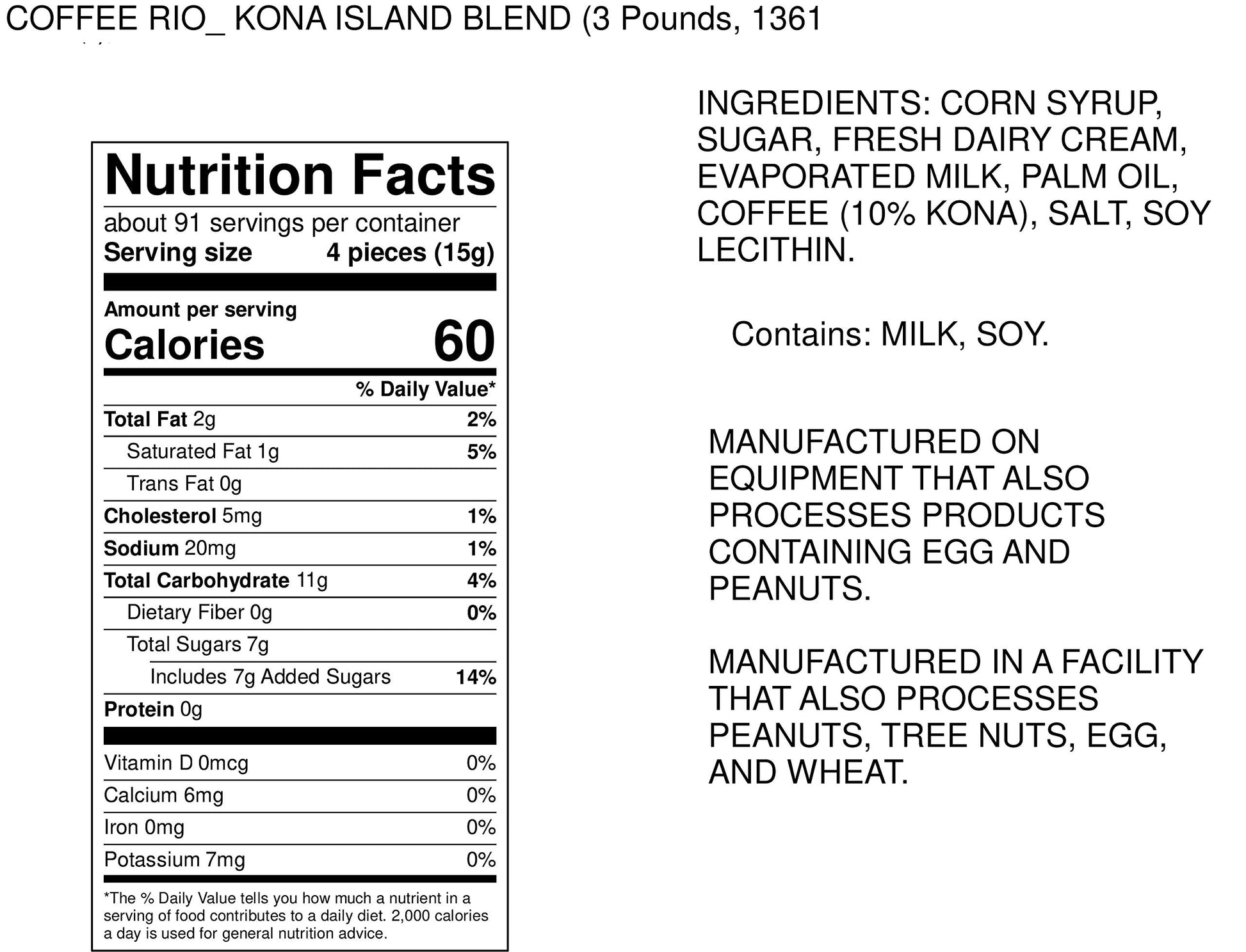 Coffee Rio Adams & Brooks Coffee Rio Candy - 3 lb Cream Kona Island Blend, Individually Wrapped Kosher Coffee Candies